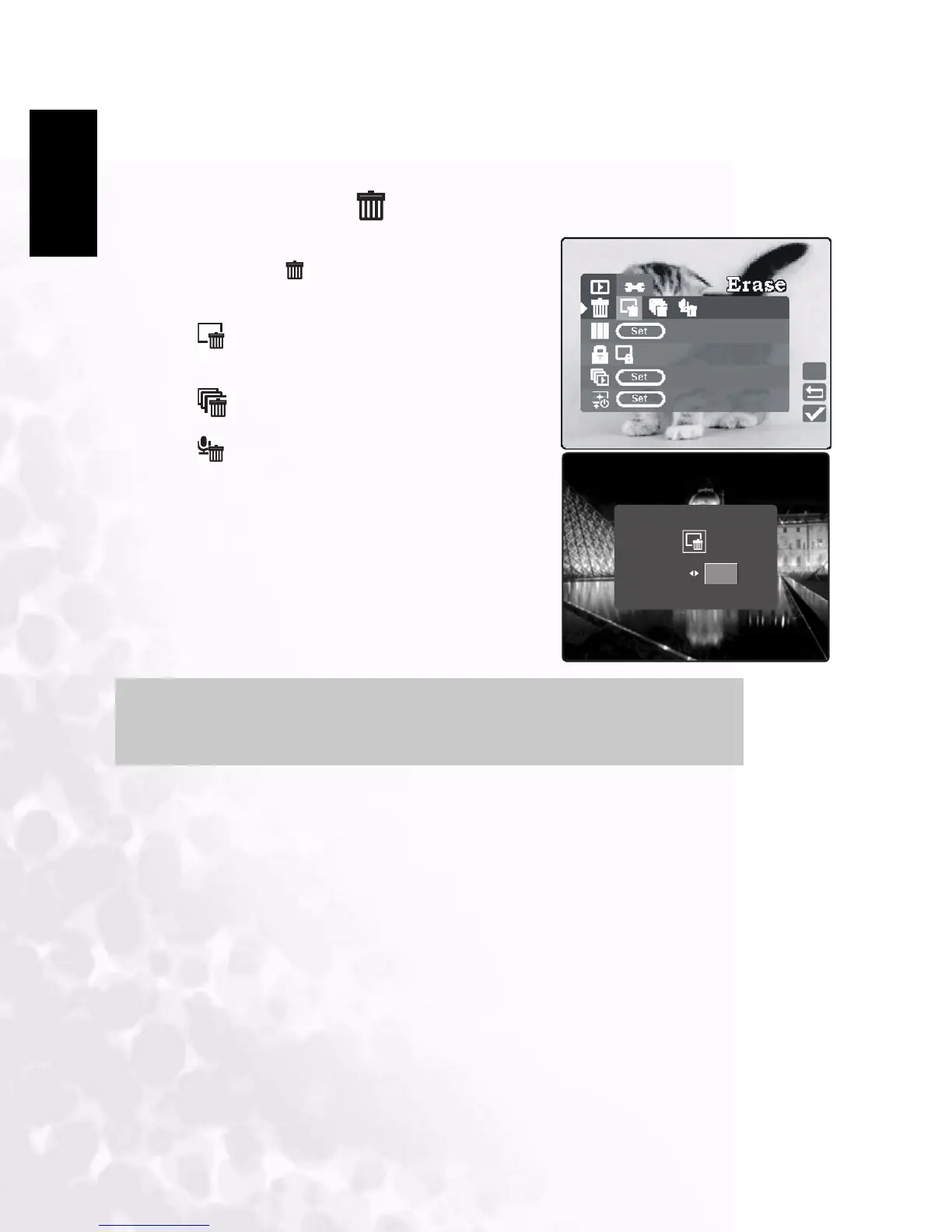 Erase All: erases all images and movies.
