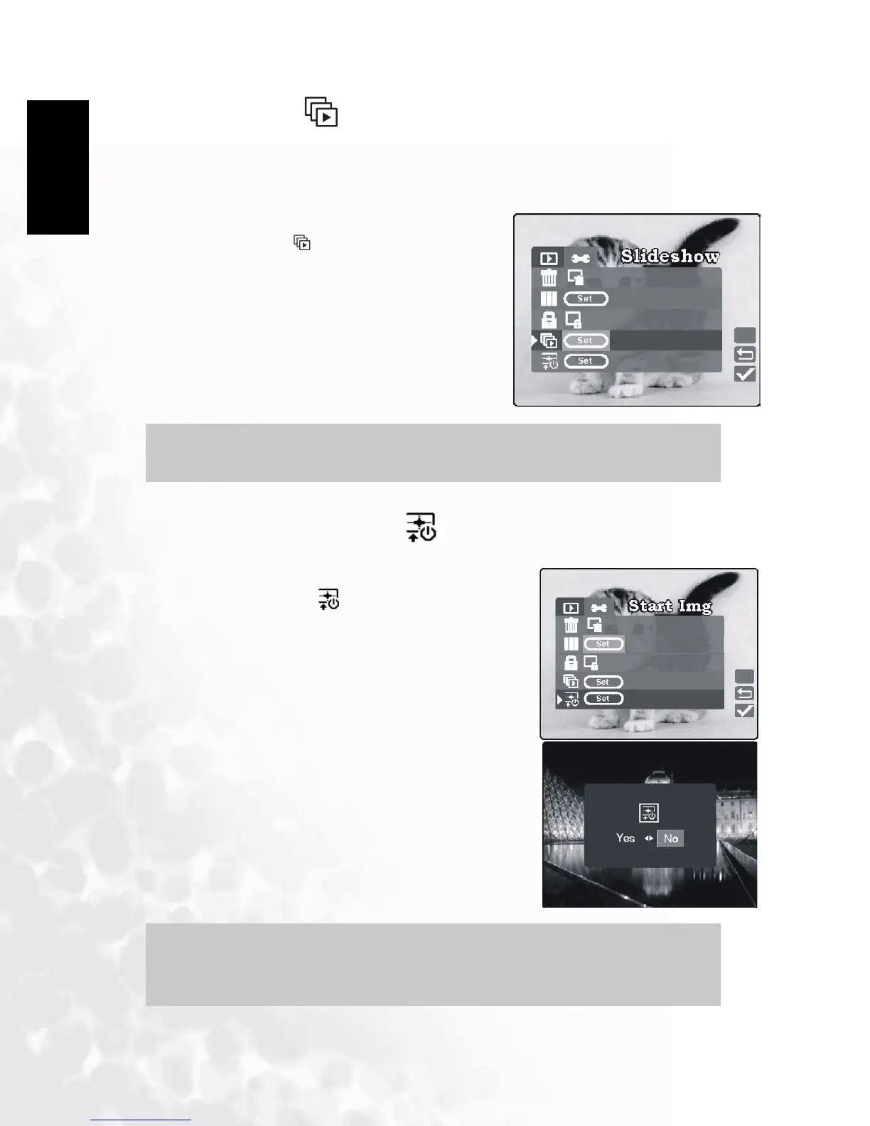 The slide show function enables you to play back your images automatically in sequential
