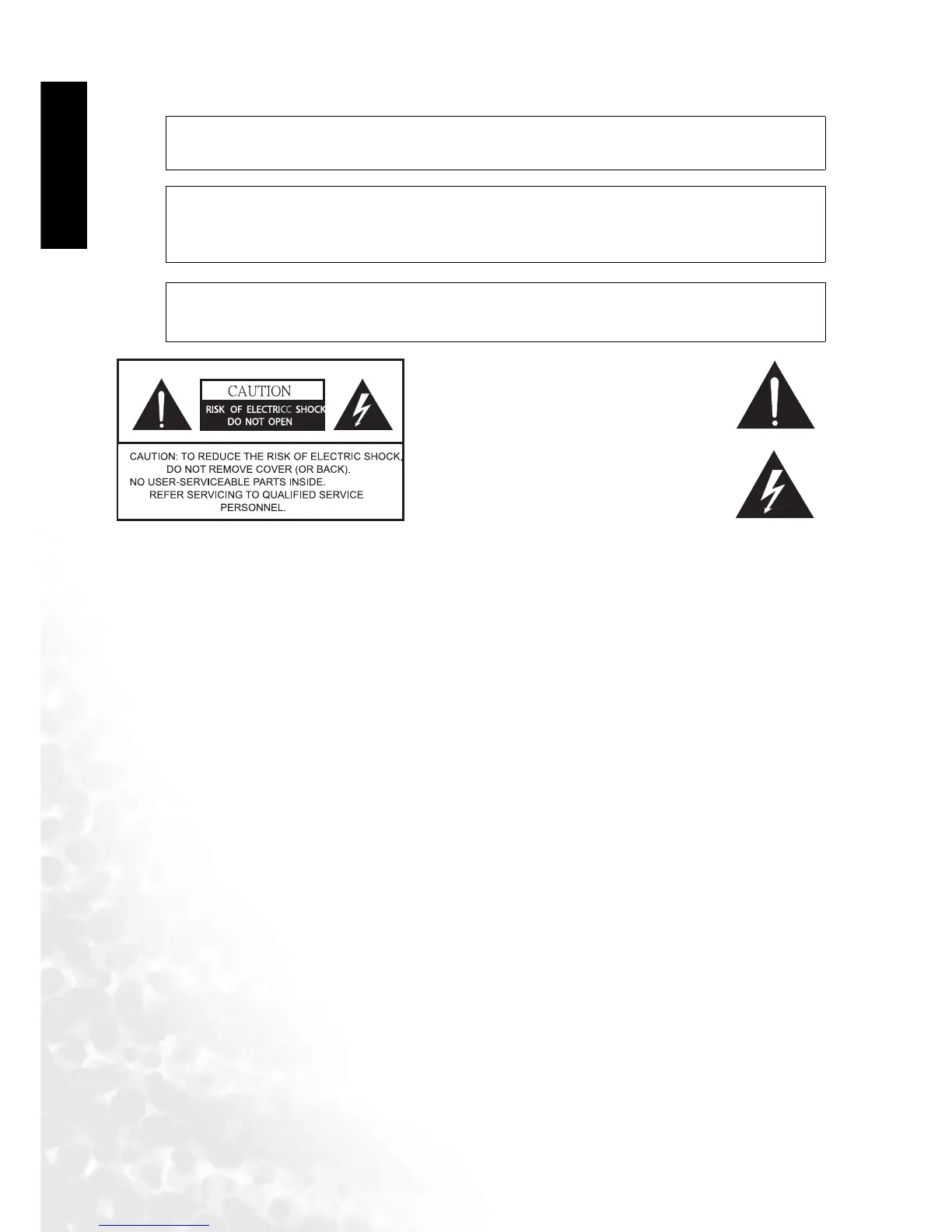 • Do not place any objects containing water or any other liquid on top of the TV.