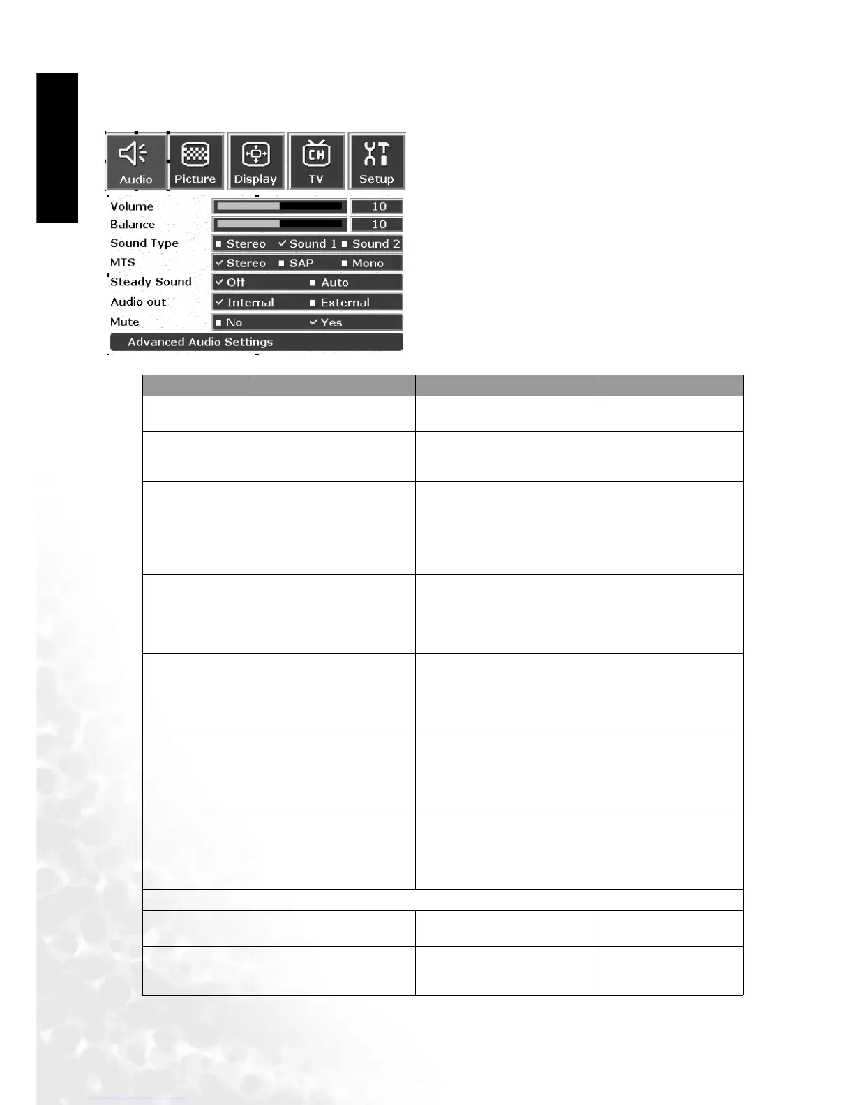 The Audio Adjustment Menu