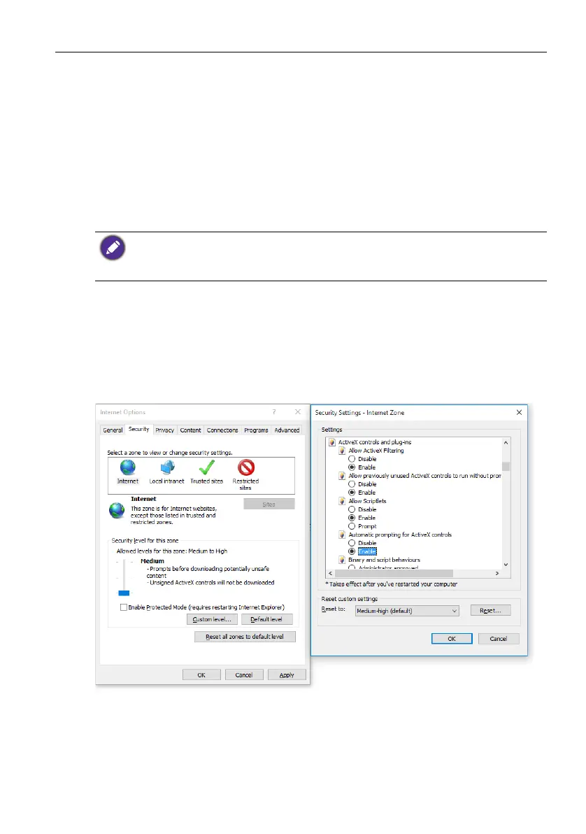 Customization Level > Security Settings > Internet Area; check “ActiveX Control” and
