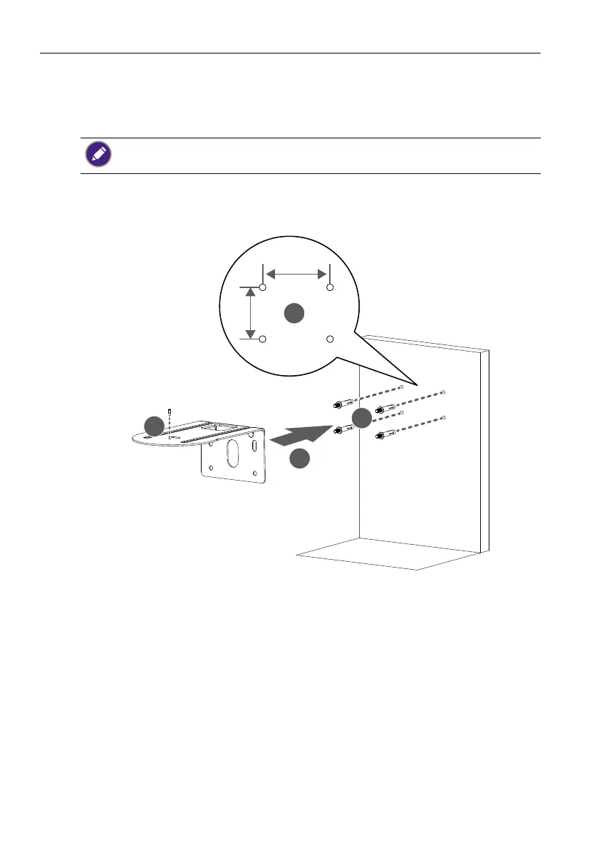 1. Choose the location on the wall for the mount and then mark the four screw anchor