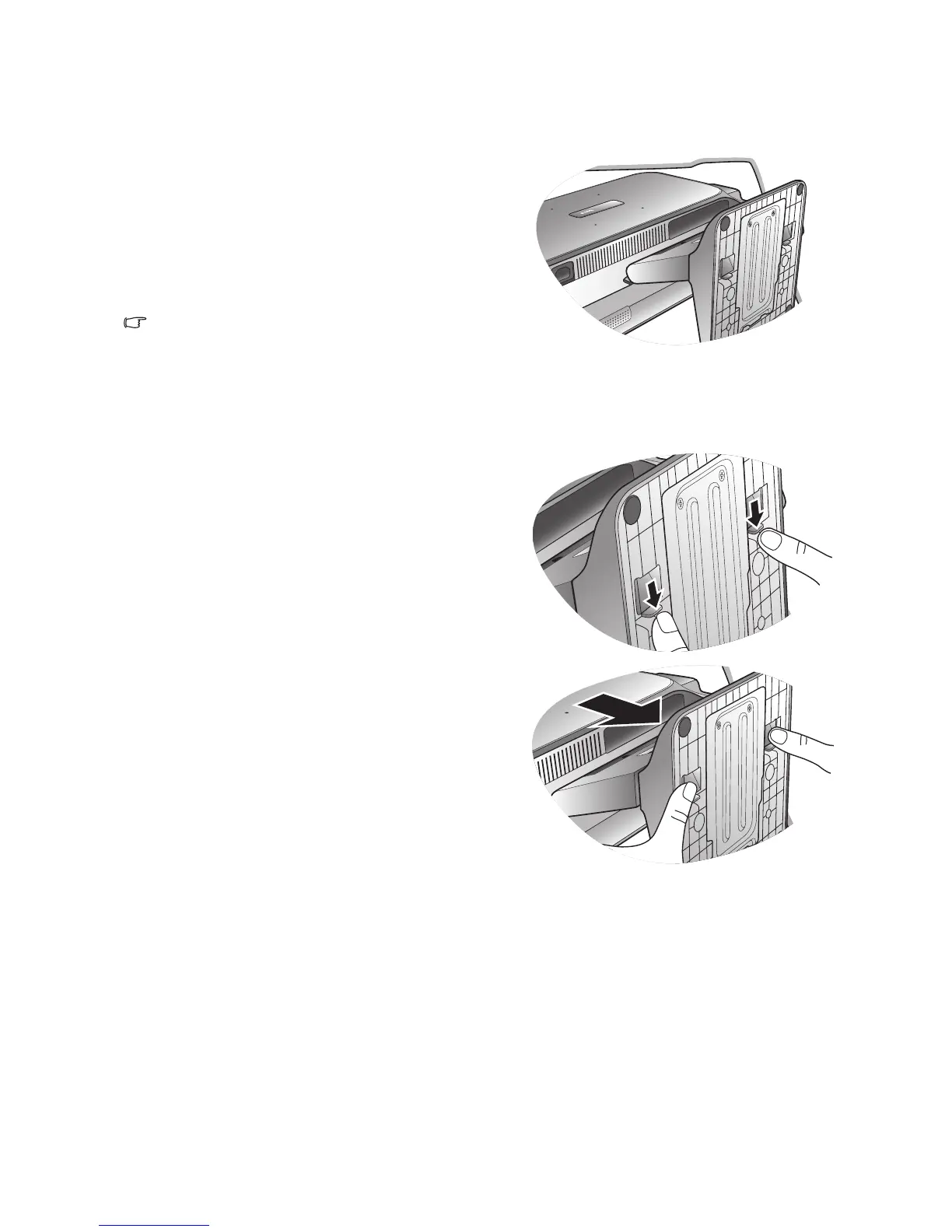 2. Press the locking clips to detach the monitor base