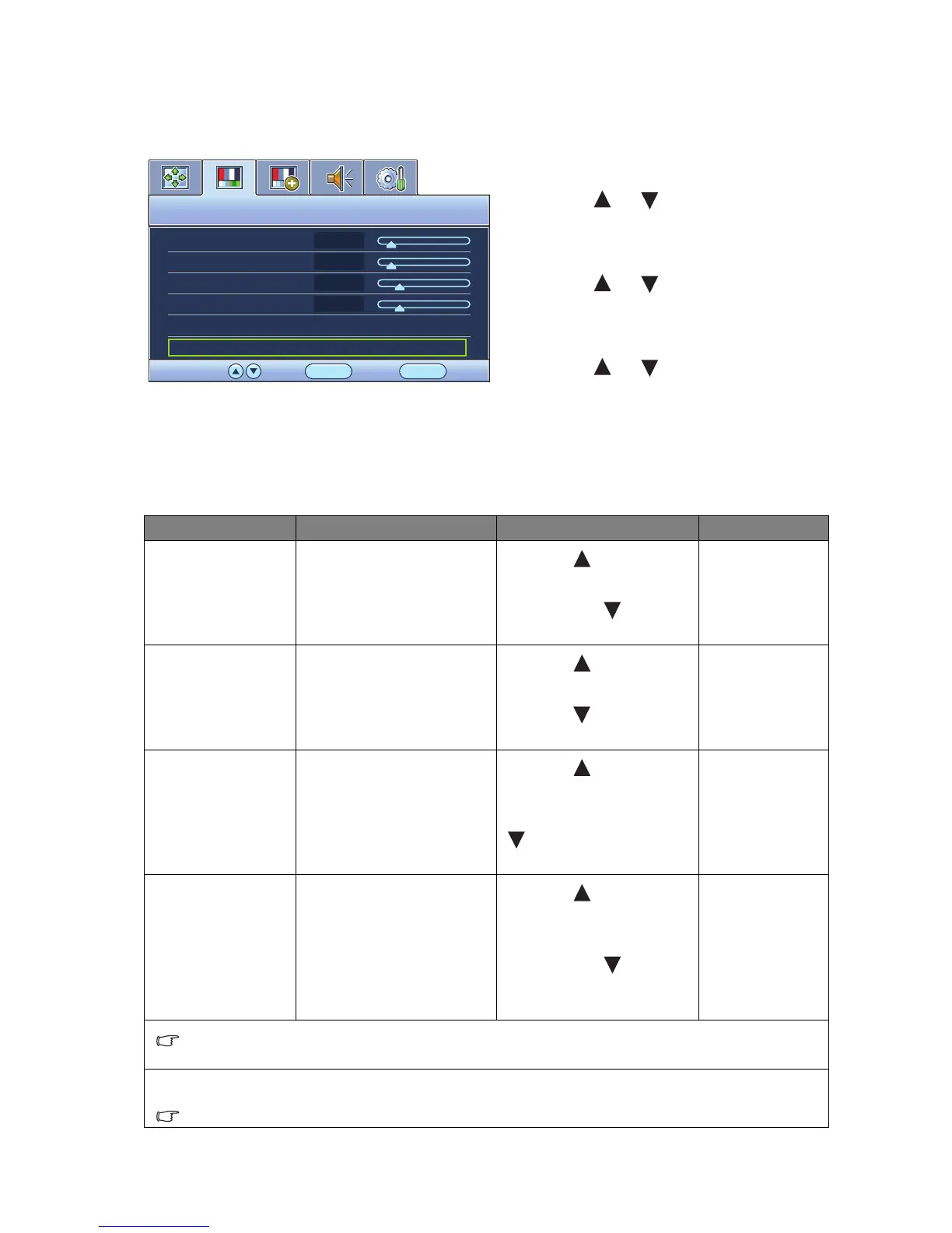 The above options for Brightness, Contrast, Sharpness, and Gamma are available only in the