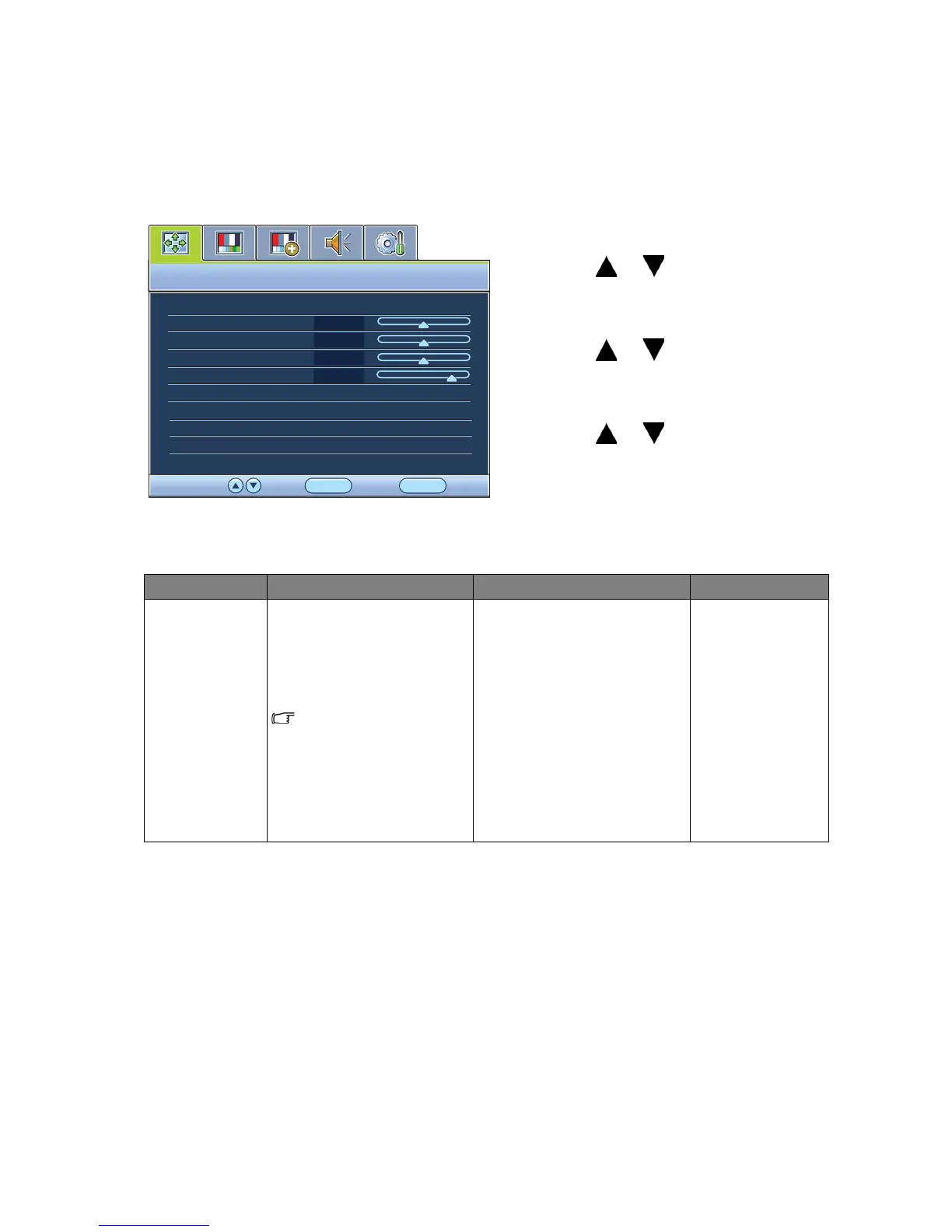 Available menu options may vary depending on the input sources, functions and settings. Menu