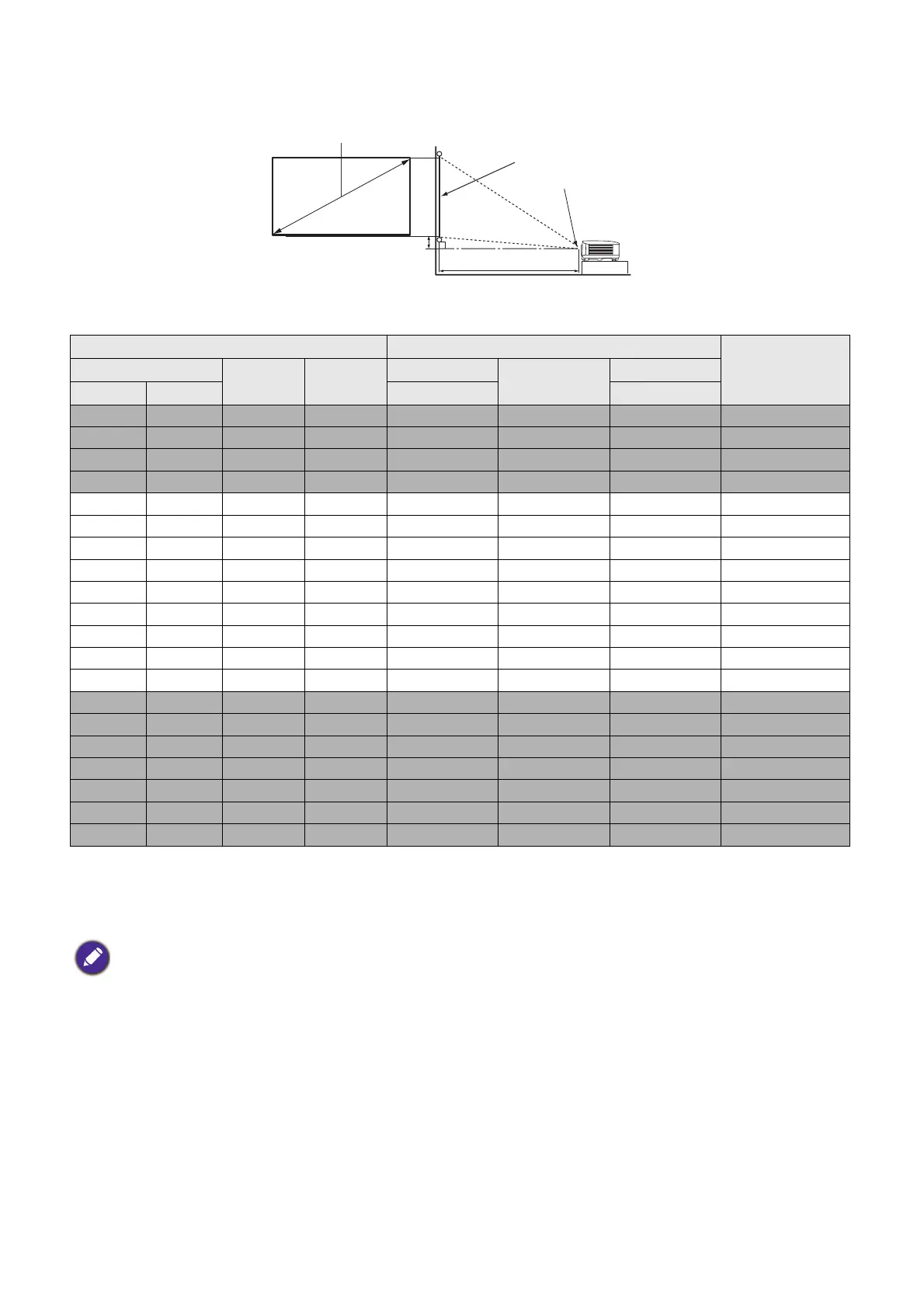 projector's optical characteristics. This will help you determine the exact mounting position so that it best suits your