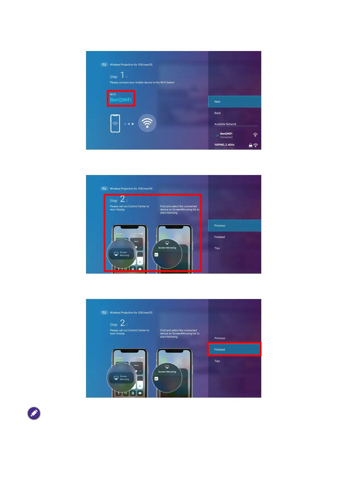 3. Follow the instructions shown on the Wireless Projection for iOS & macOS screen to project