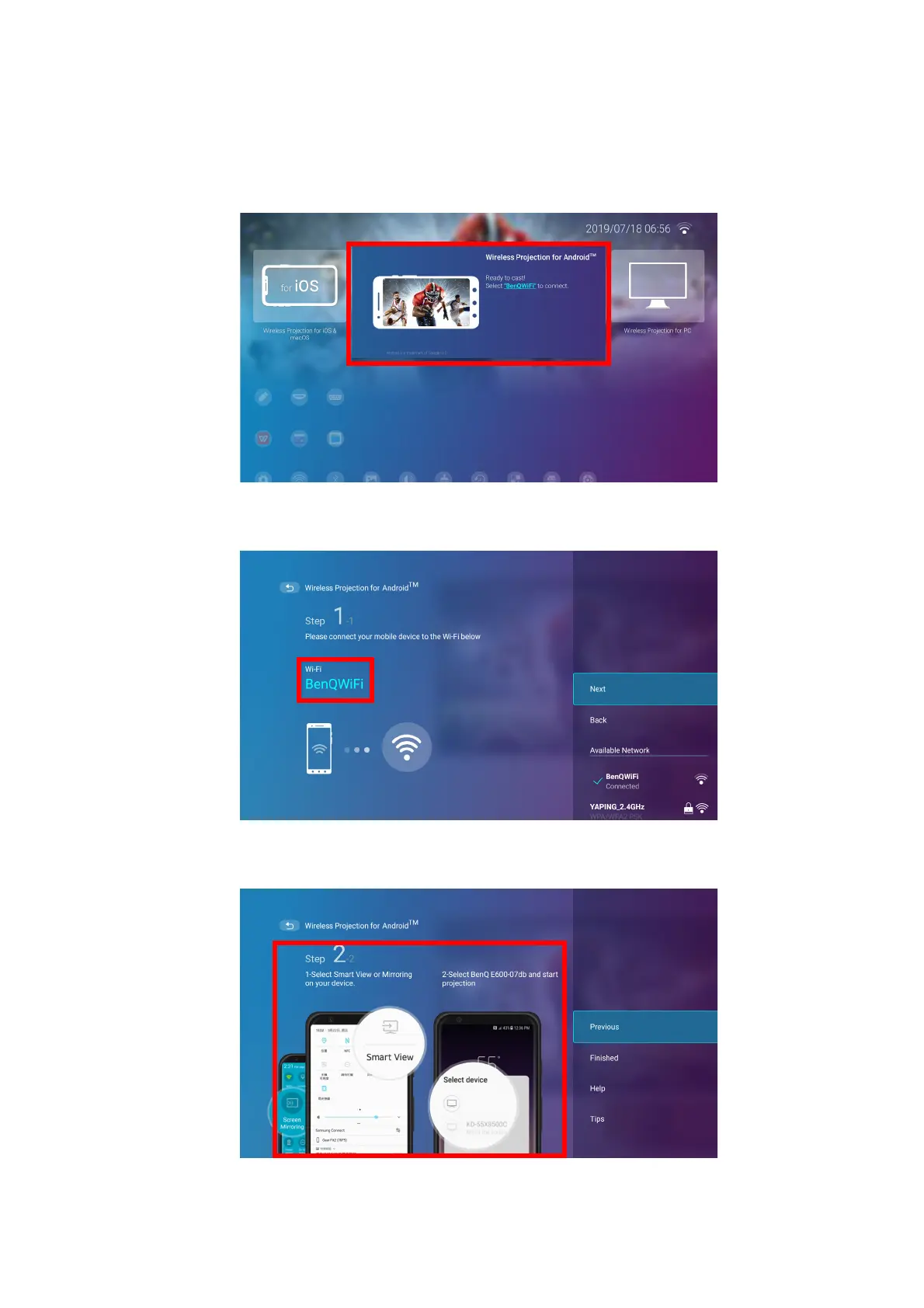 1. On the home screen of the BenQ Launcher interface, select Wireless Projection for