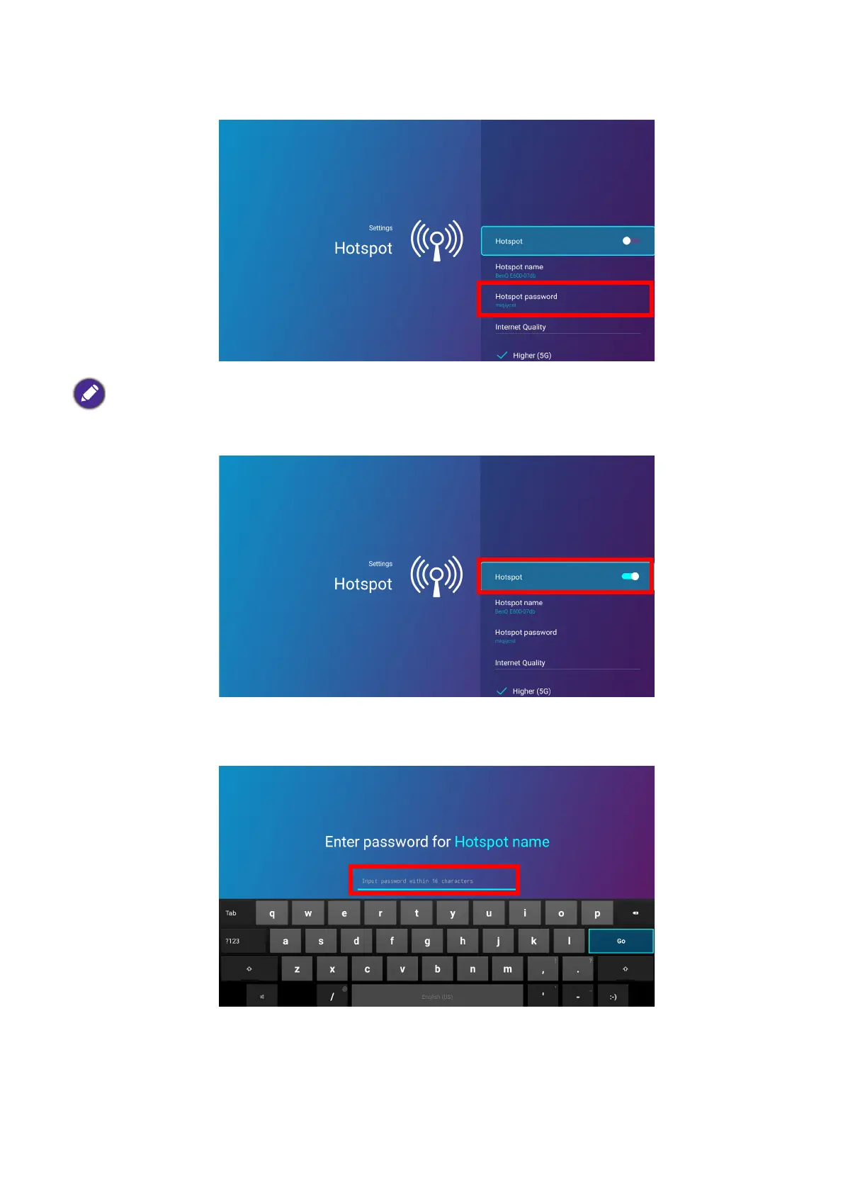 connect to from your mobile device’s wireless menu and use the password shown in the Hotspot