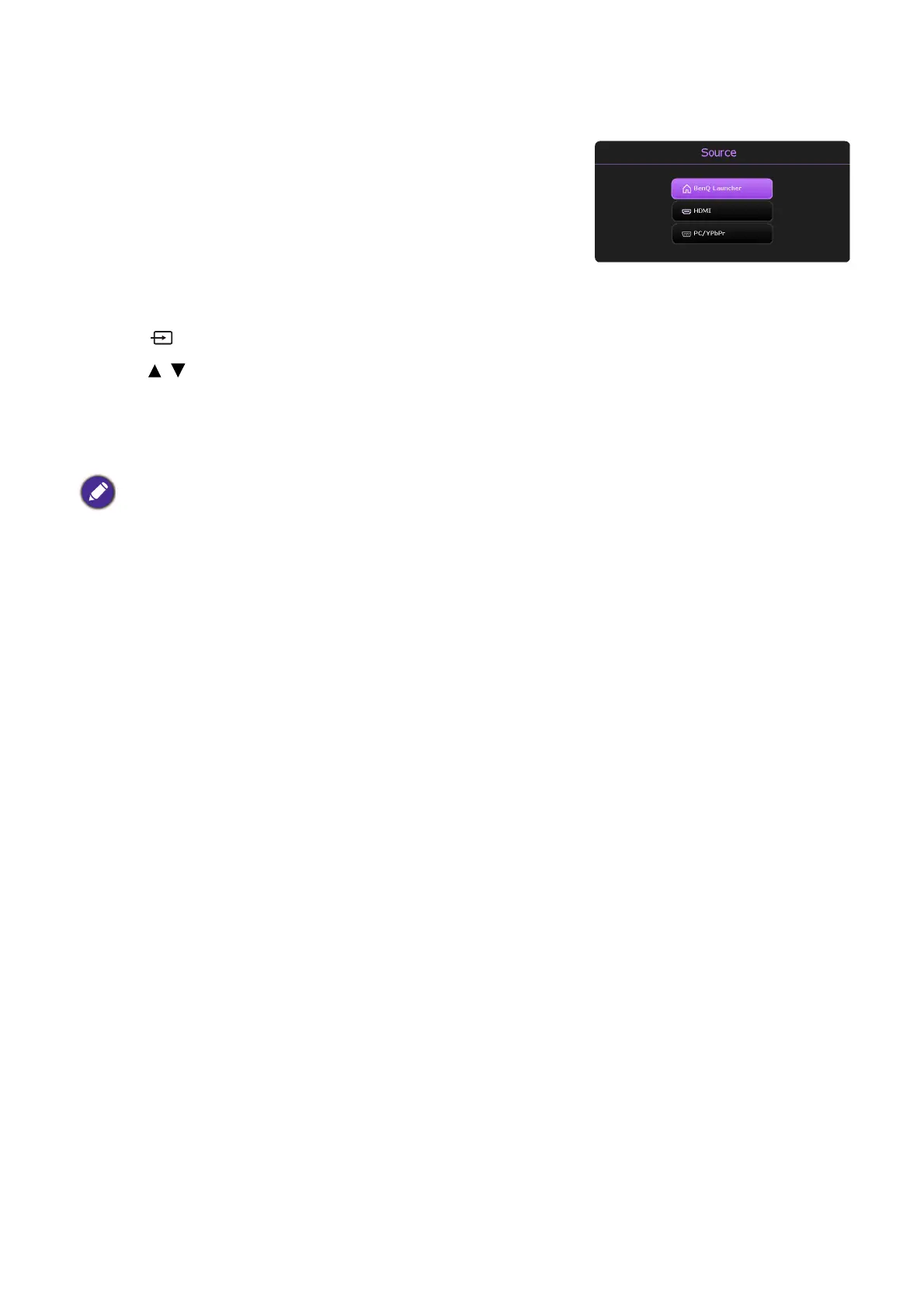 Once detected, the selected source information will appear at the corner of the screen for seconds.