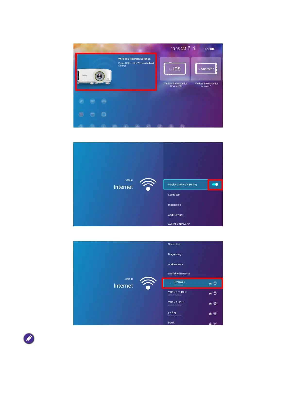 3. On the home screen of the BenQ Launcher interface, select Wireless Network Settings