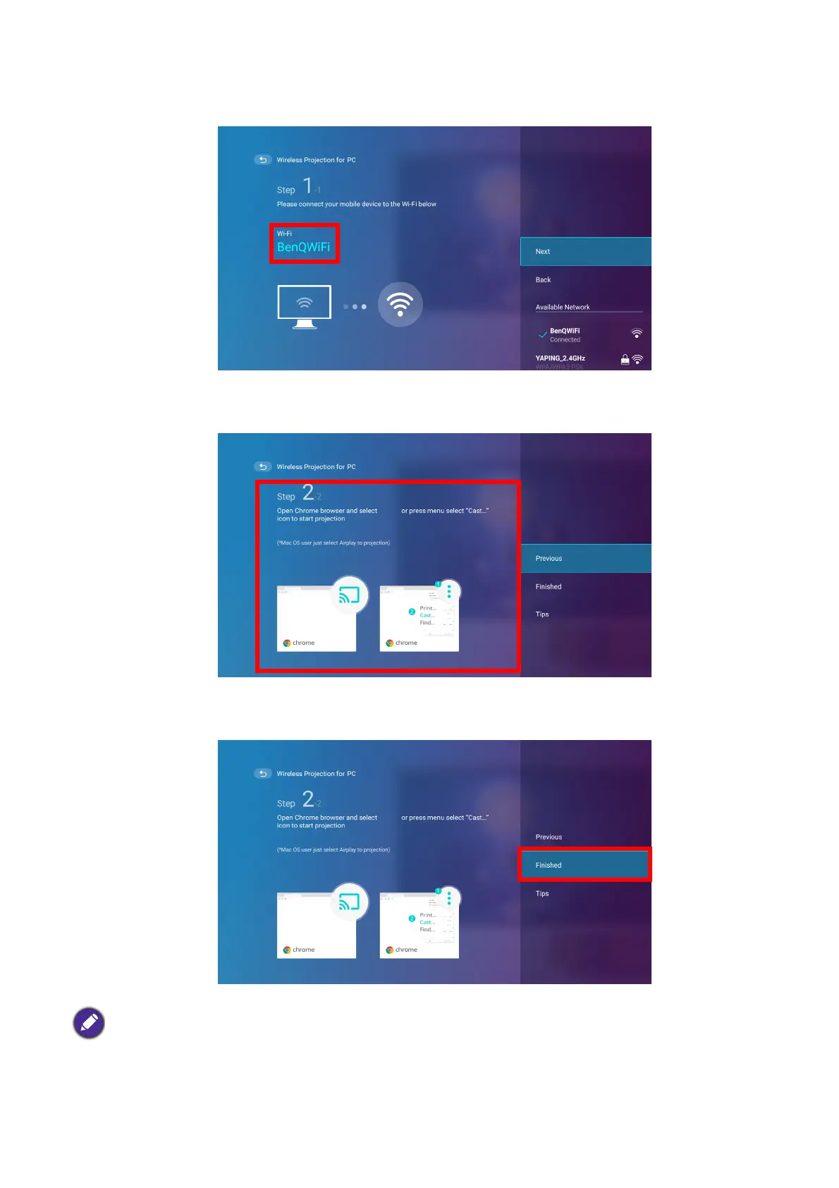 3. Follow the instructions shown on the Wireless Projection for PC screen to project your