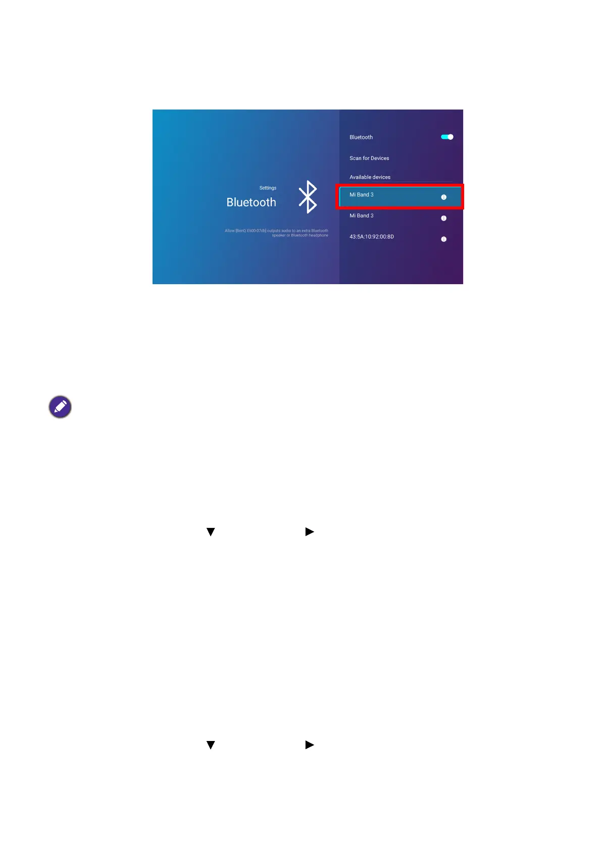 7. Select the speaker or headphones from the Device List in the Bluetooth setting menu and