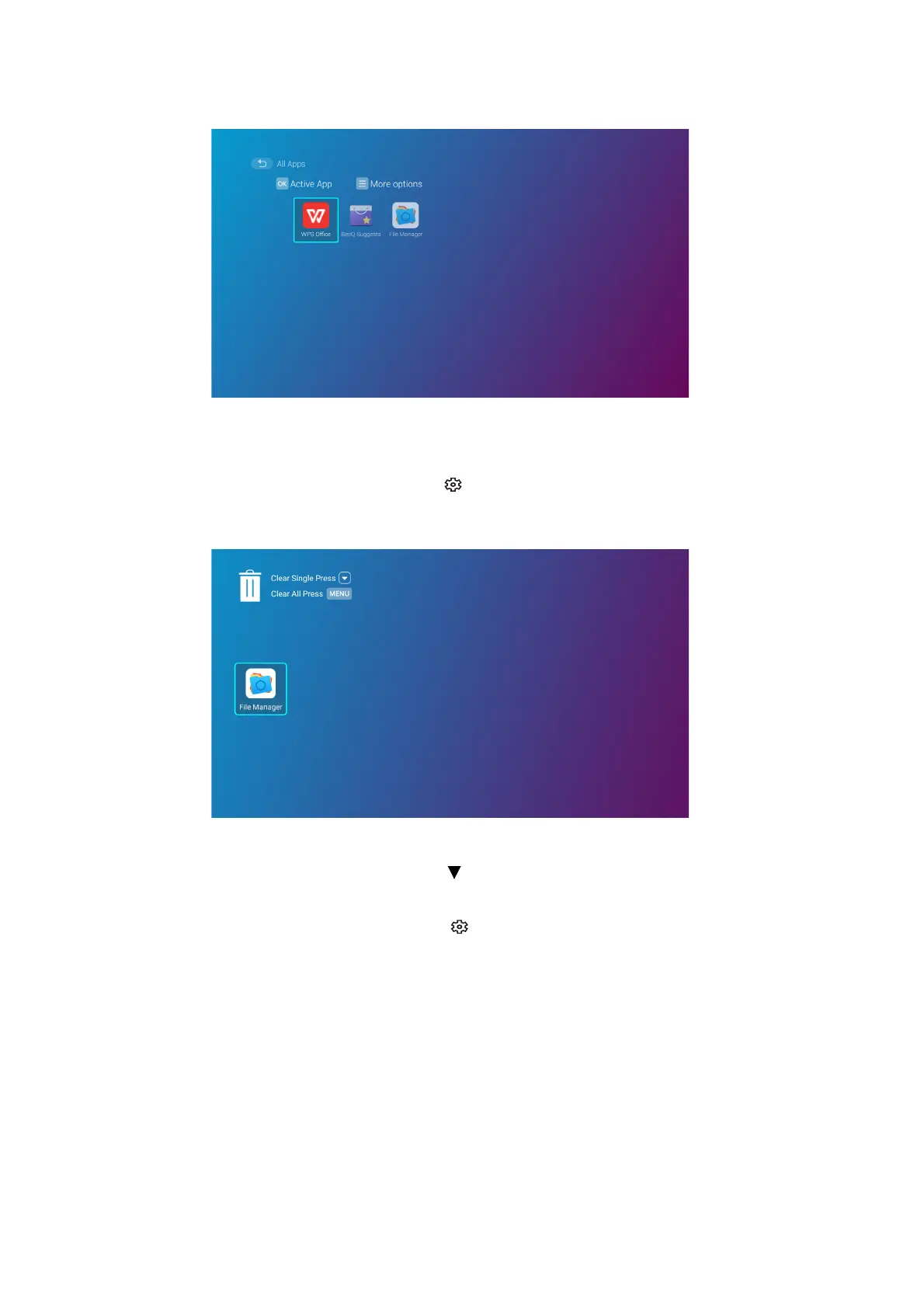 • Select any icon and press the down button ( ) to remove the icon from the list of recently