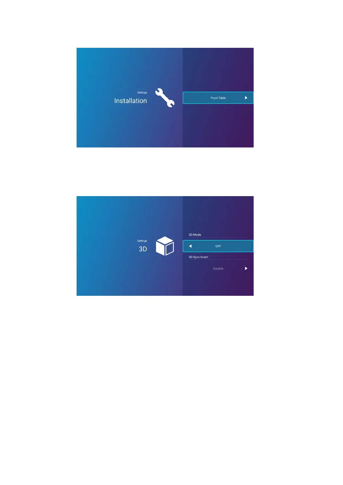 The options available for the 3D settings menu are the same as the options available in the