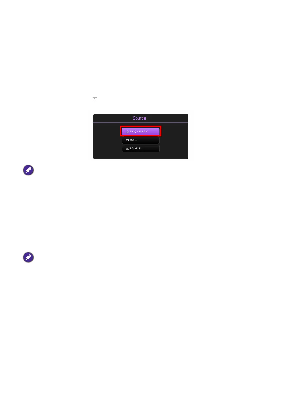 box, or PC). The projector will remain outside of the BenQ Launcher interface as long as the
