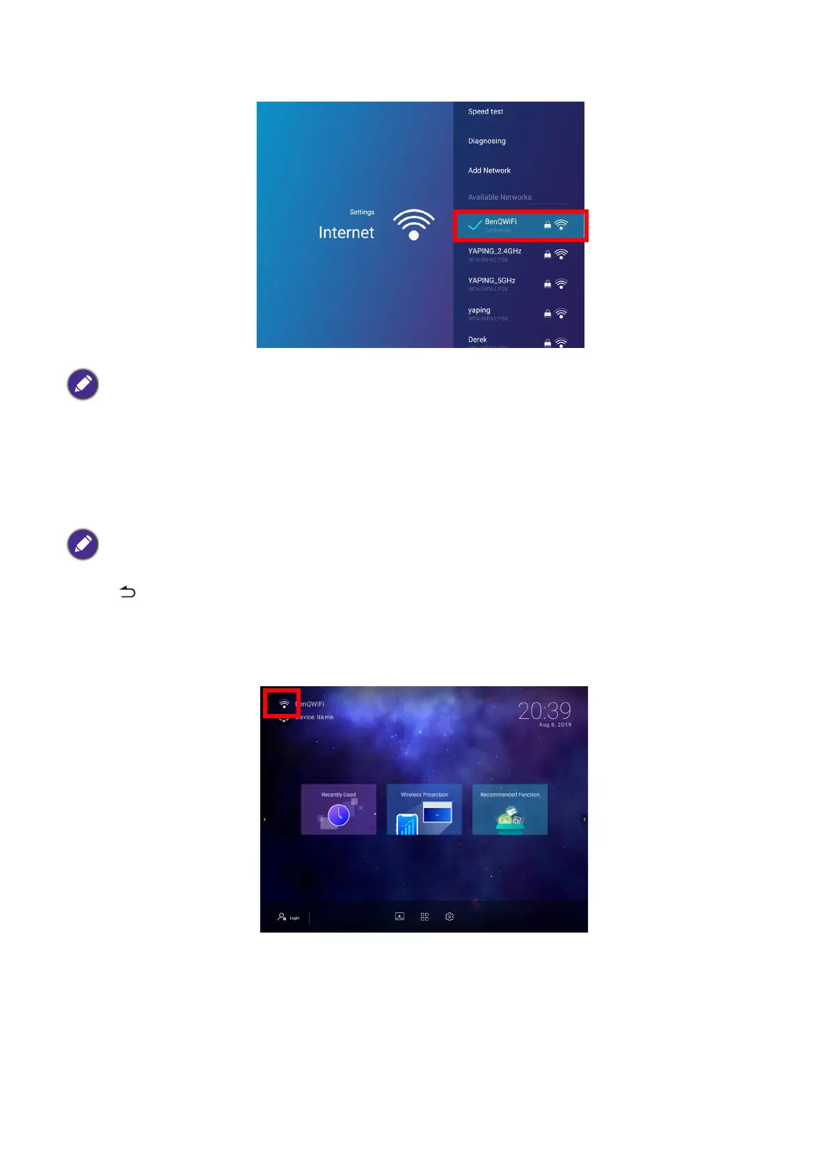 appear at the top left corner of the BenQ Launcher interface. You can now connect your