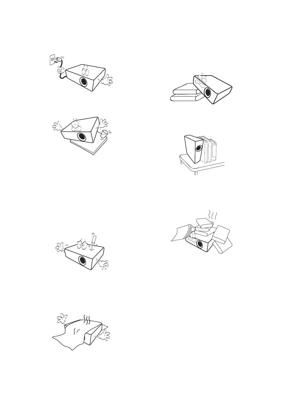 - Ovaj projektor ne prekrivajte tkaninom ili bilo