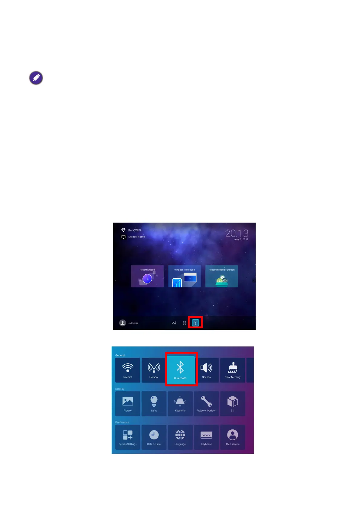 • The Bluetooth connection does not support any data transfer as the projector only allows Bluetooth