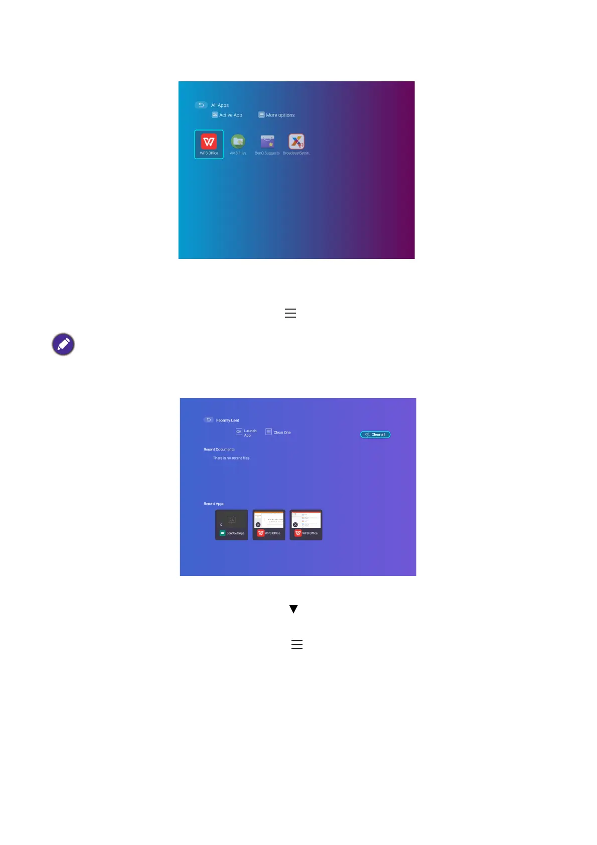 Select the All Apps menu to access all the apps that have been installed on the projector.