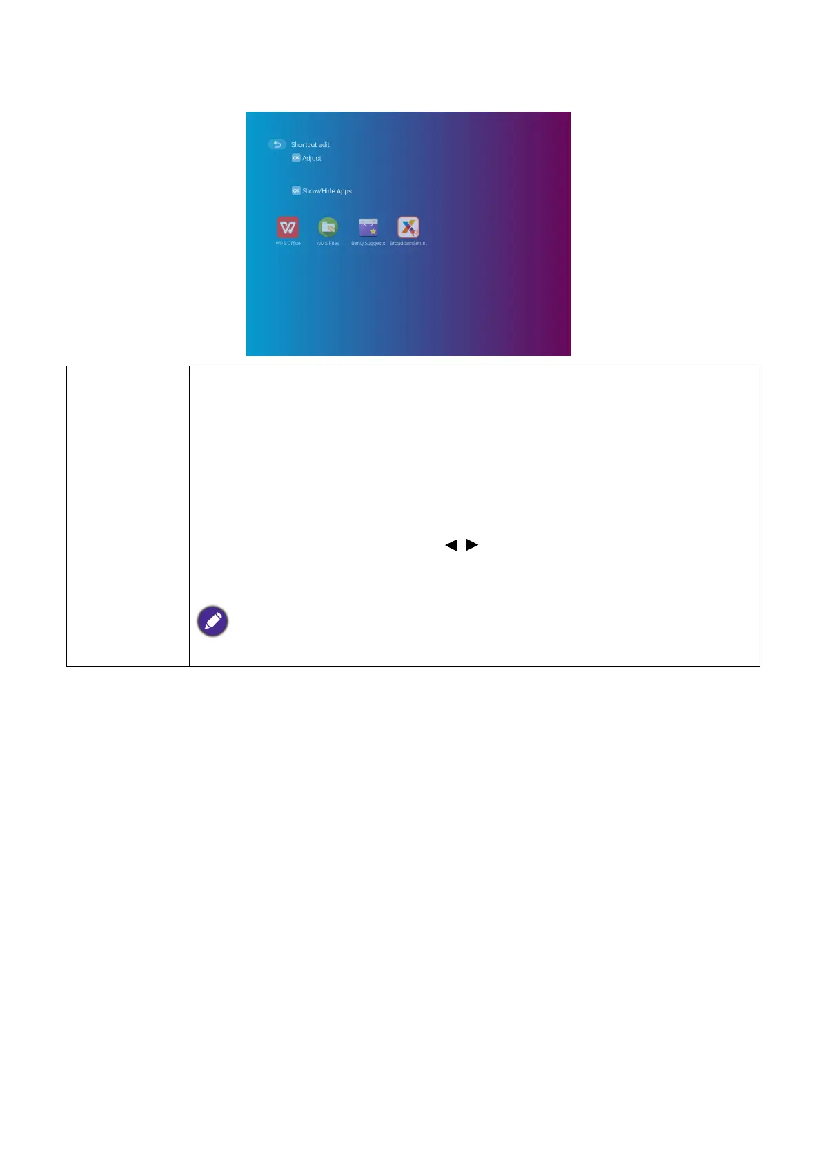 Sets which app shortcuts are displayed on the BenQ Launcher home