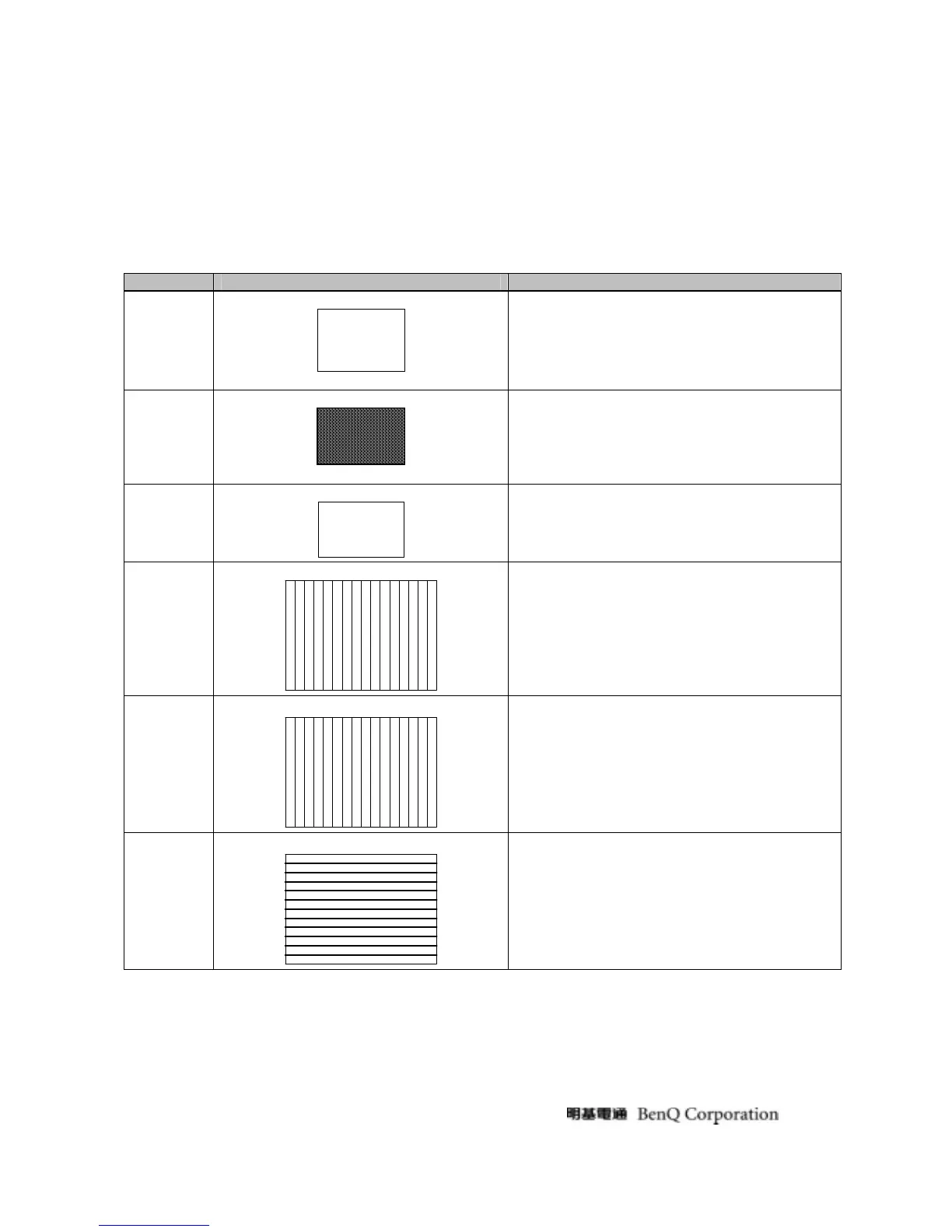 BenQ G2220HD - 3.2.13. OPERATIONAL INSPECTION CRITERIA; 3.2.13.1. List of test pattern