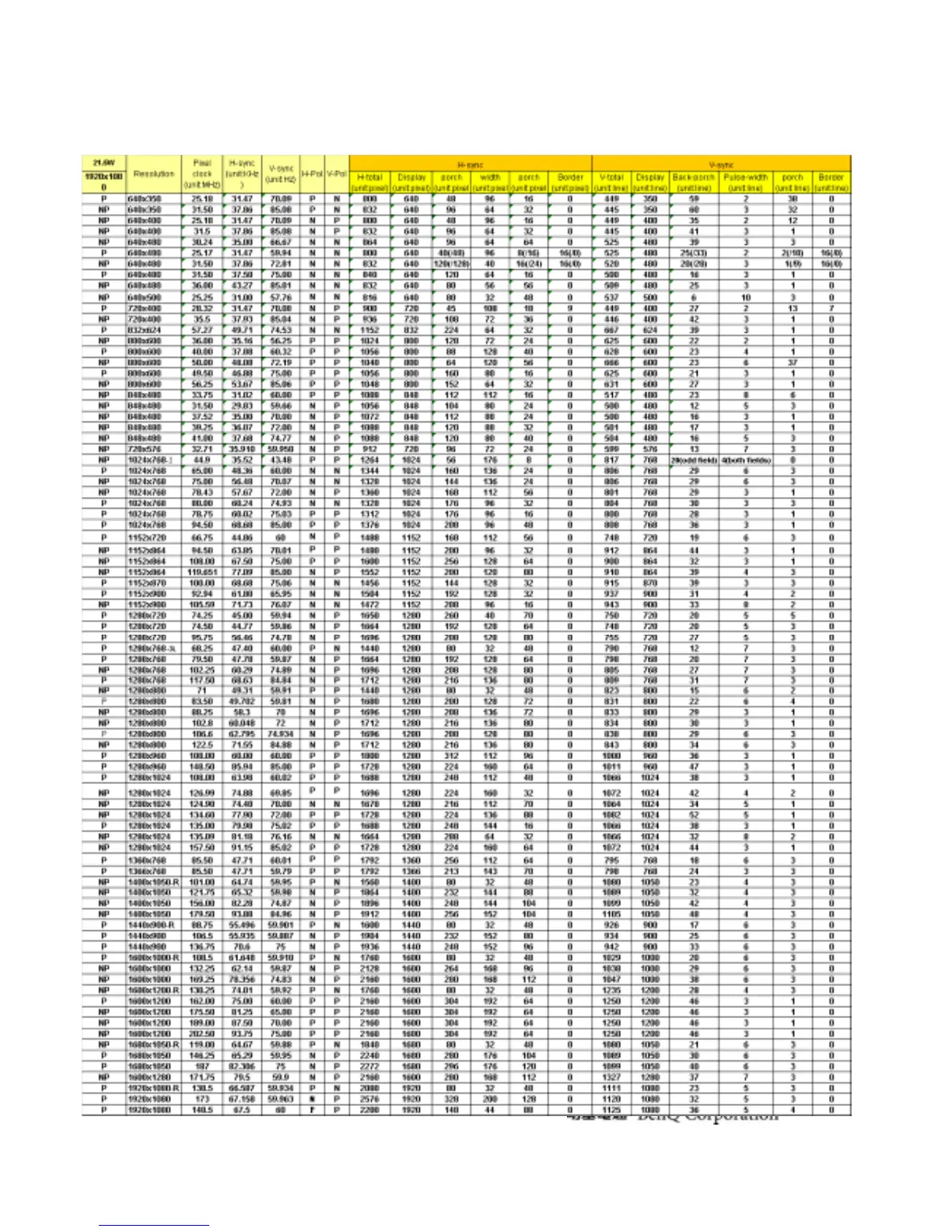 BenQ G2220HD - Support Timings