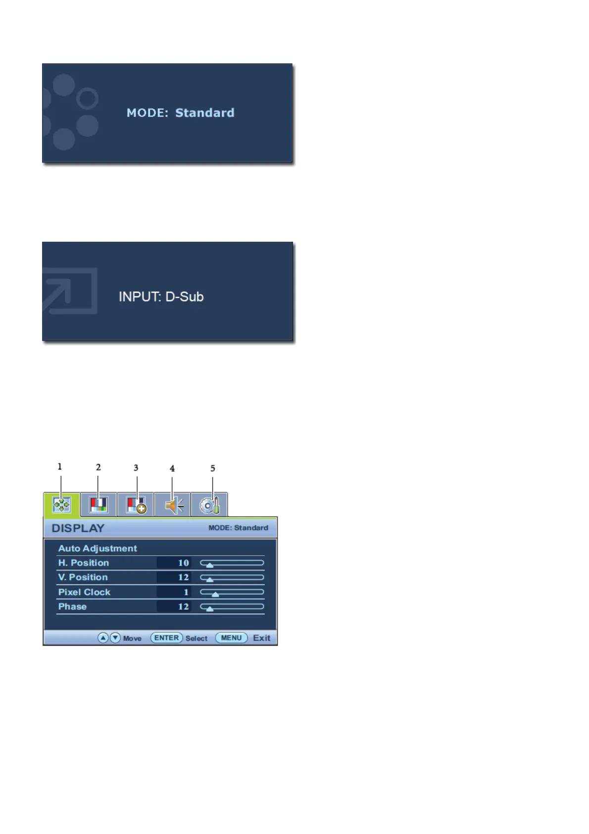 Press the ▼ key continually to switch between the 6 modes for the main window, including Standard, Movie, Game,