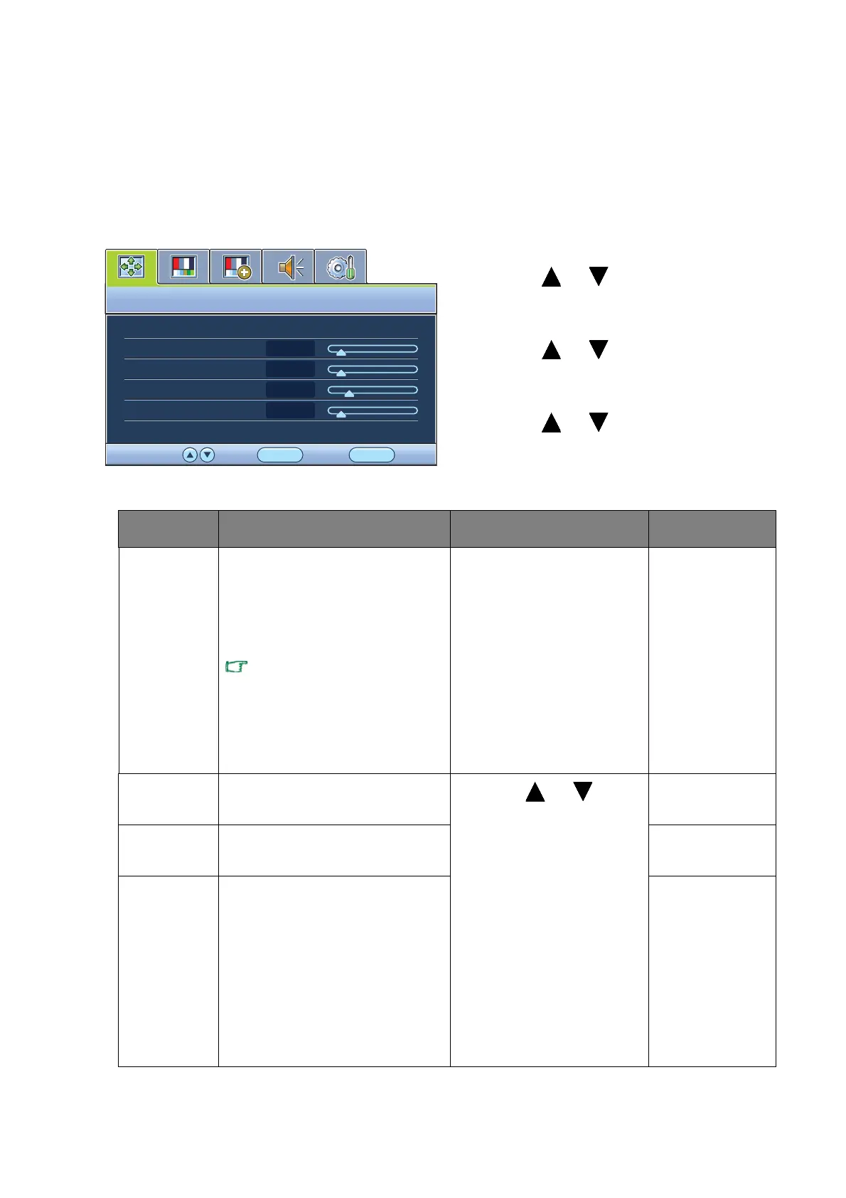 V. Position Adjusts the vertical position of