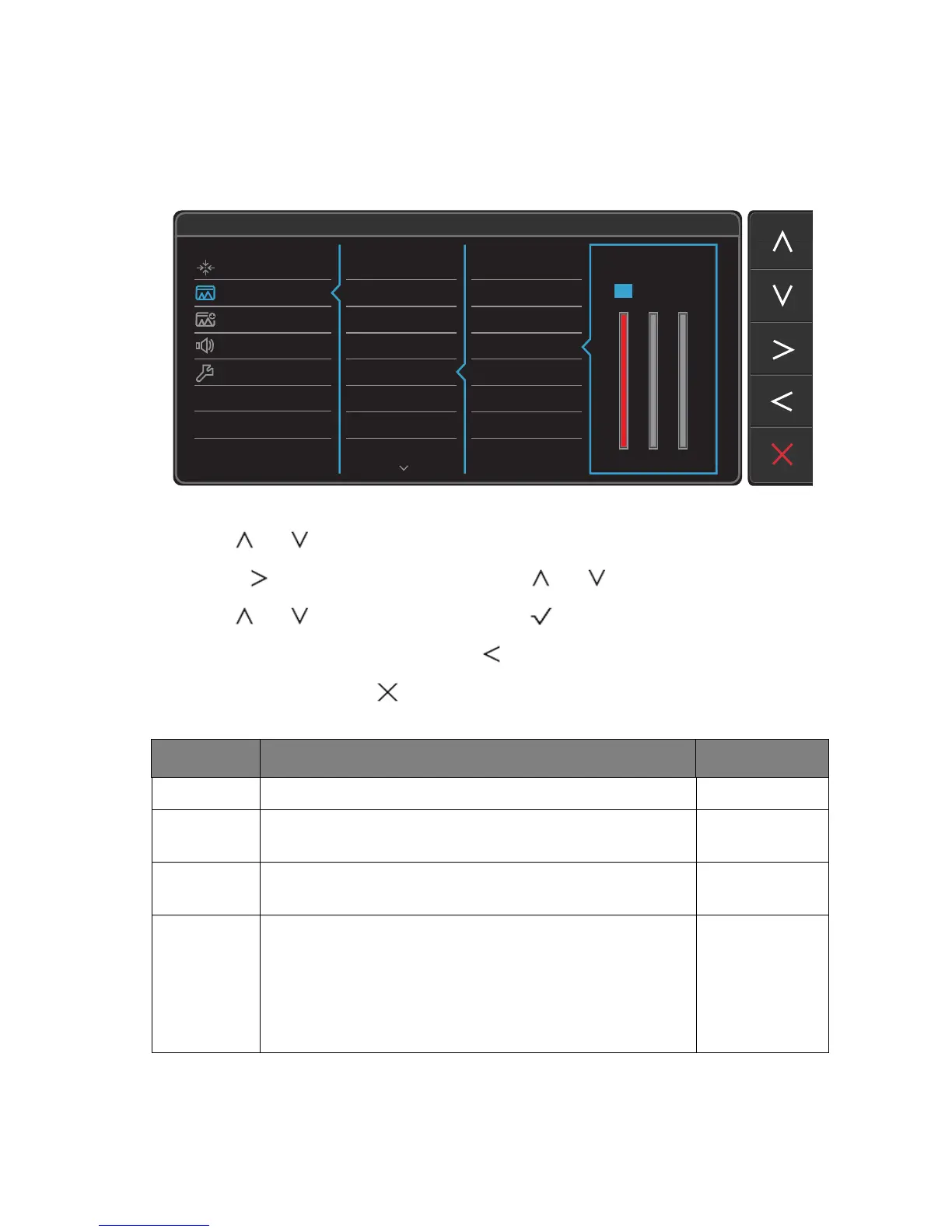 4. Use or to make adjustments, or use to make selection.