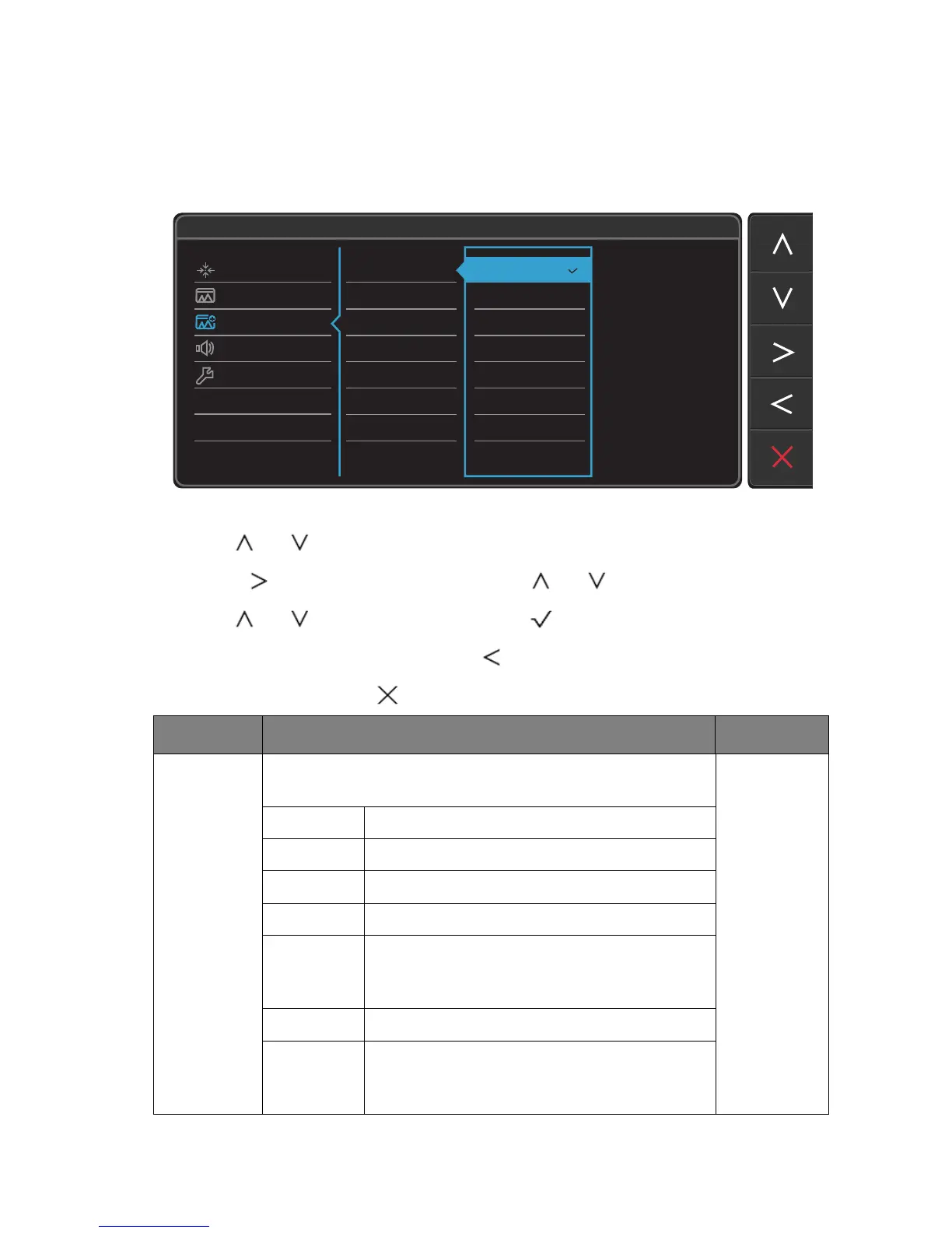 4. Use or to make adjustments, or use to make selection.