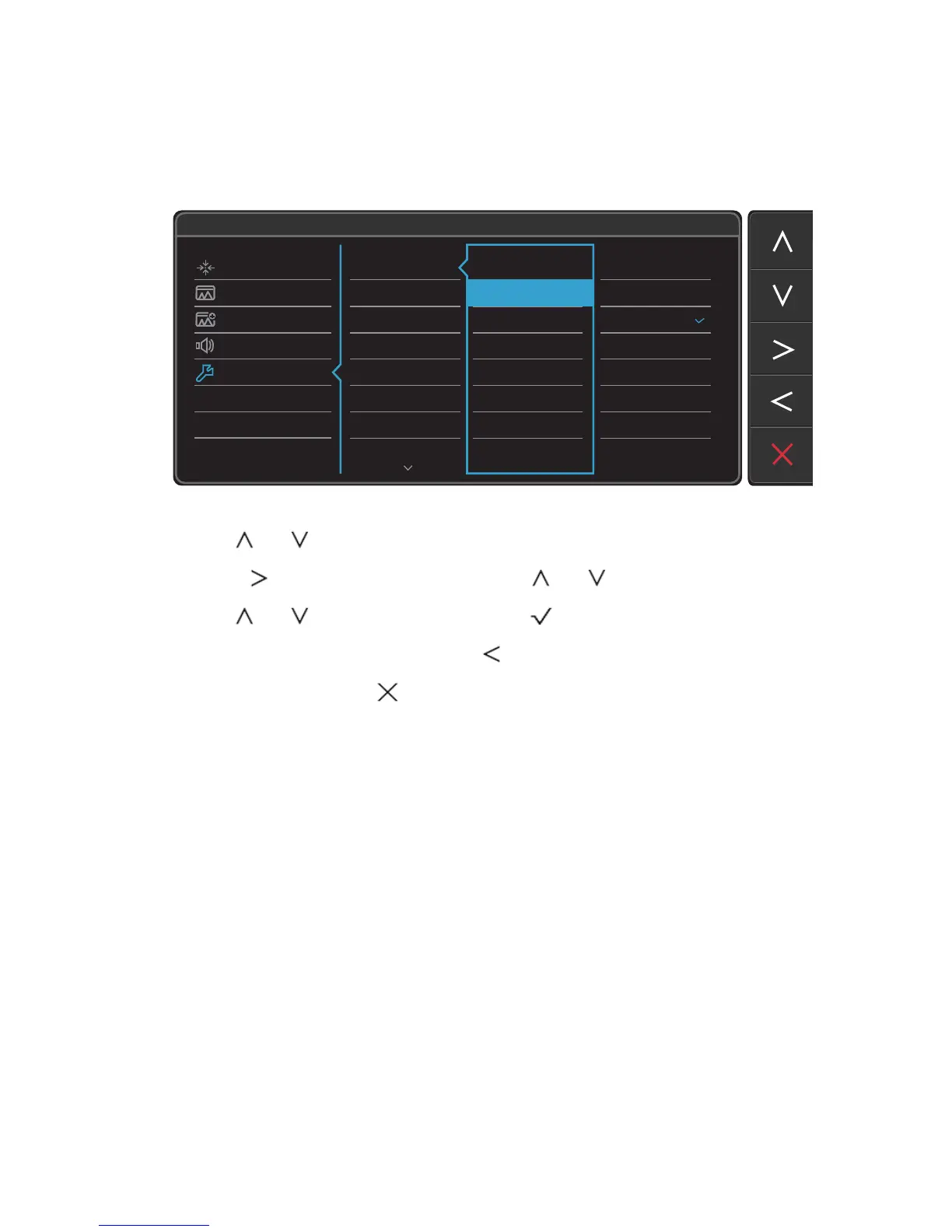 4. Use or to make adjustments, or use to make selection.