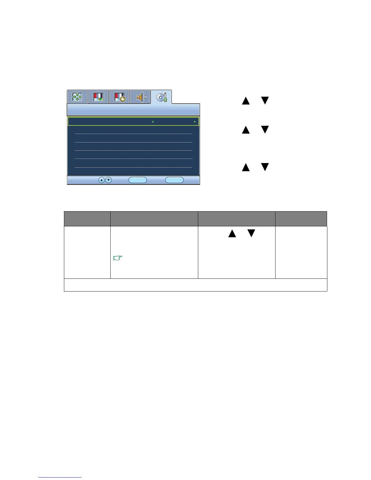 2. Press the or keys to select