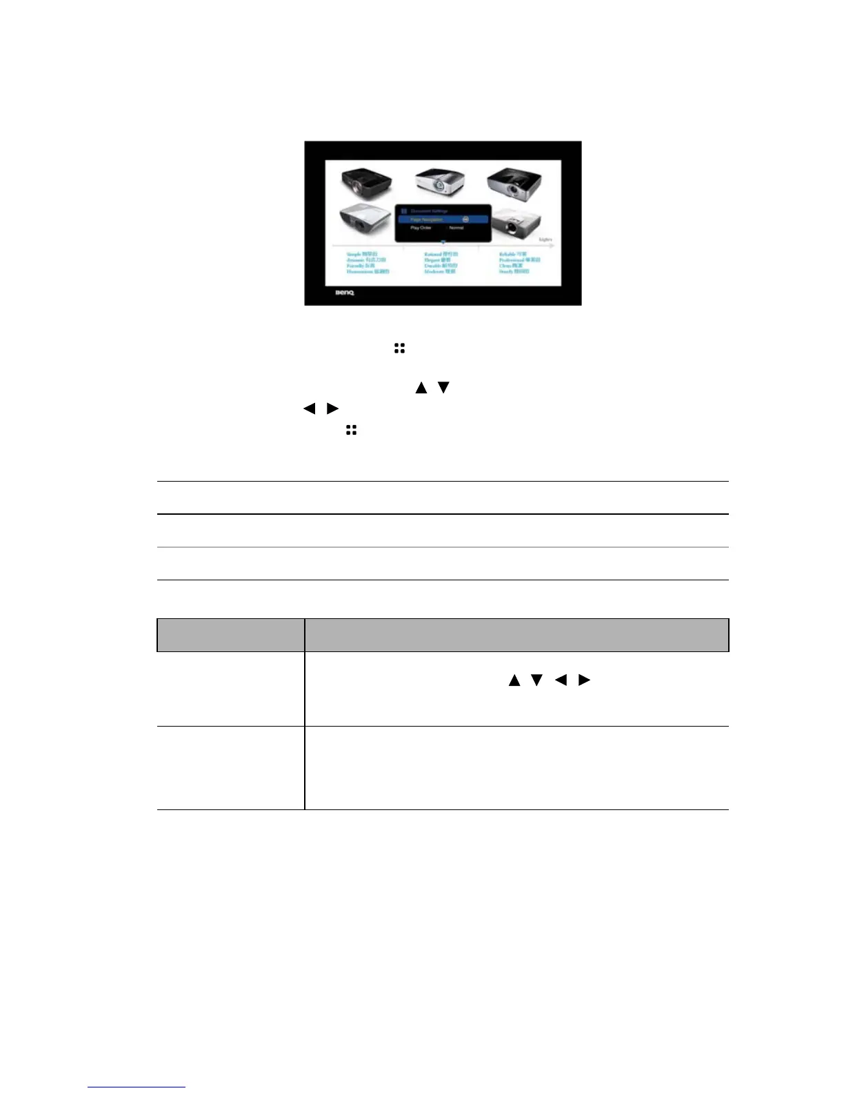 The document view pop-up menu provides an on-screen display (OSD) for adjustments