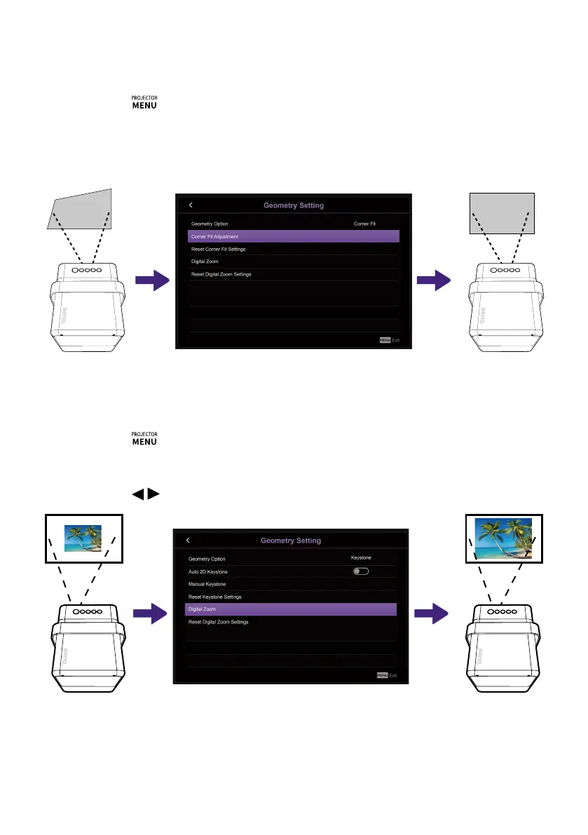 Adjust when the four corners of the projected image are distorted.
