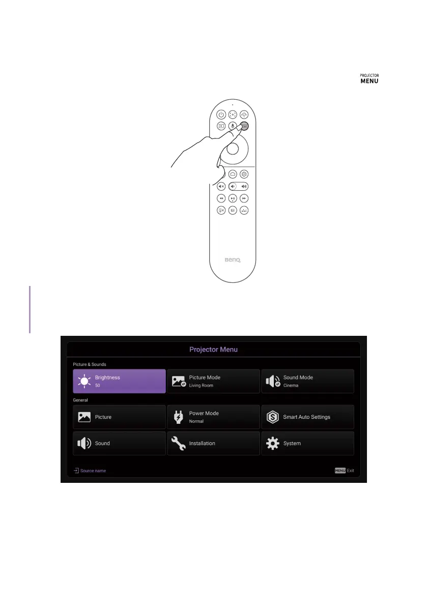 projector provides a settings menu. To access the menu, press the
