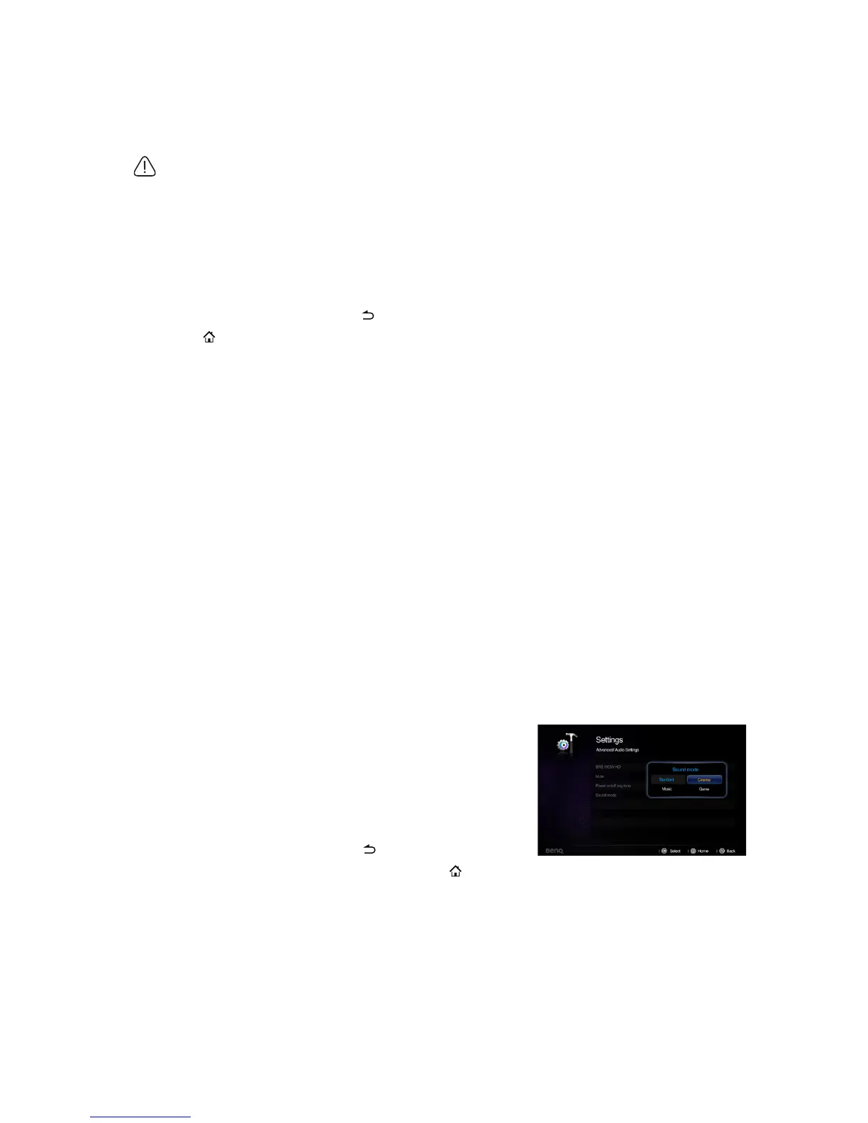 choose one of the four preset sound modes: Standard, Cinema, Music, and Game