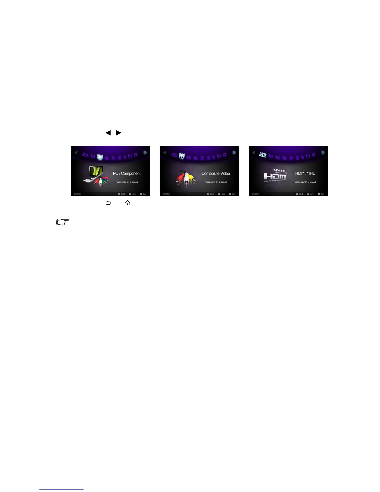 4. Press or to go back to home screen (Does not apply when using MHL as