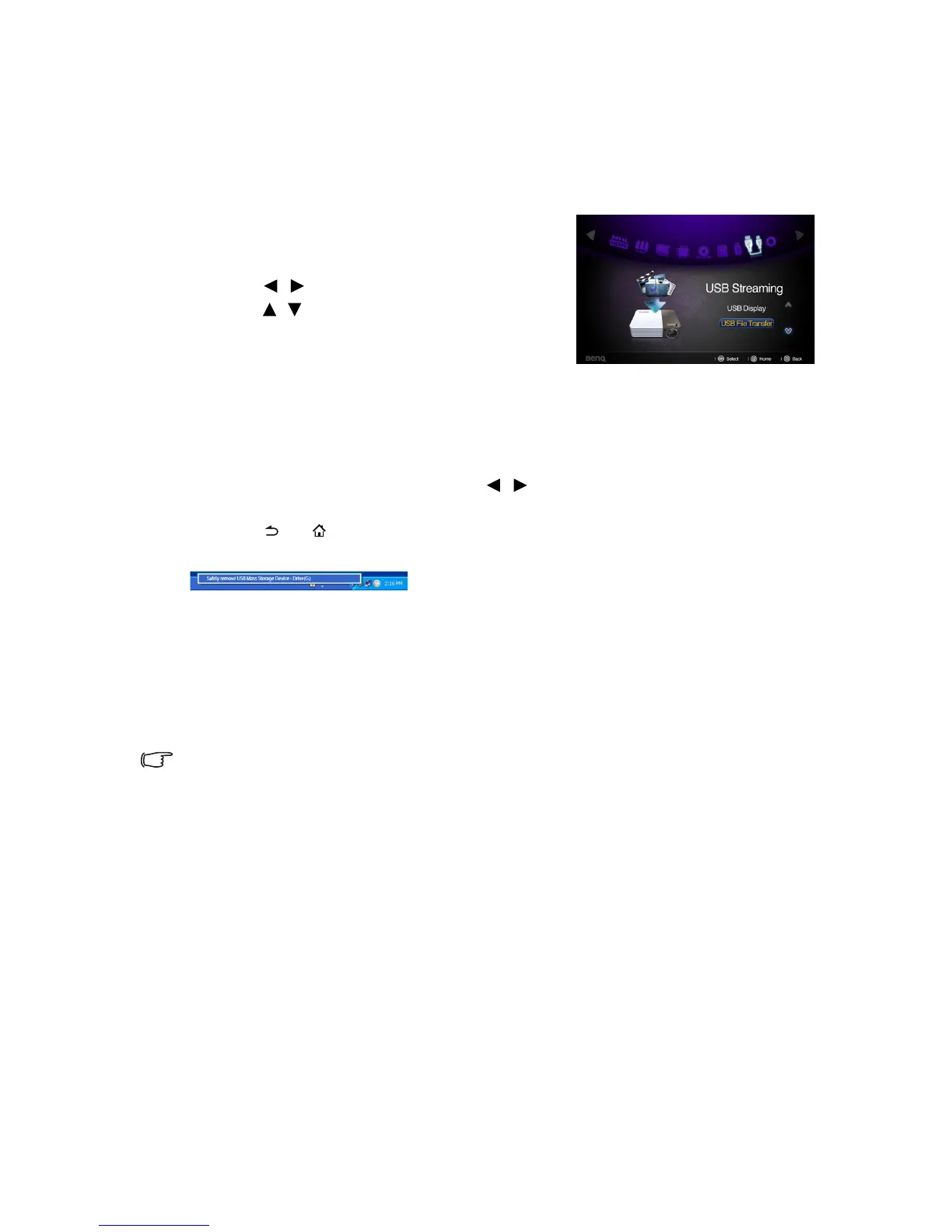 9. Press or to leave USB File Transfer mode and back to projector home screen.