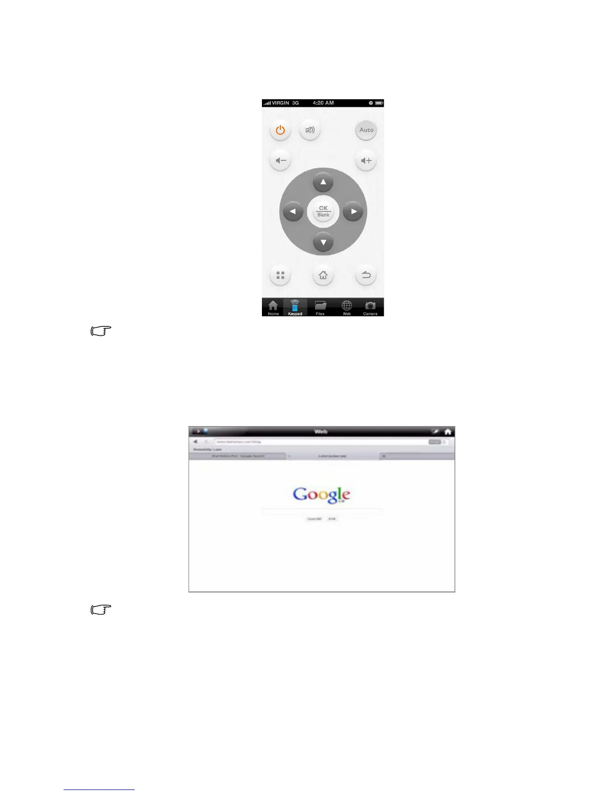 2. Control the projector remotely with your mobile device through Wi-Fi network.