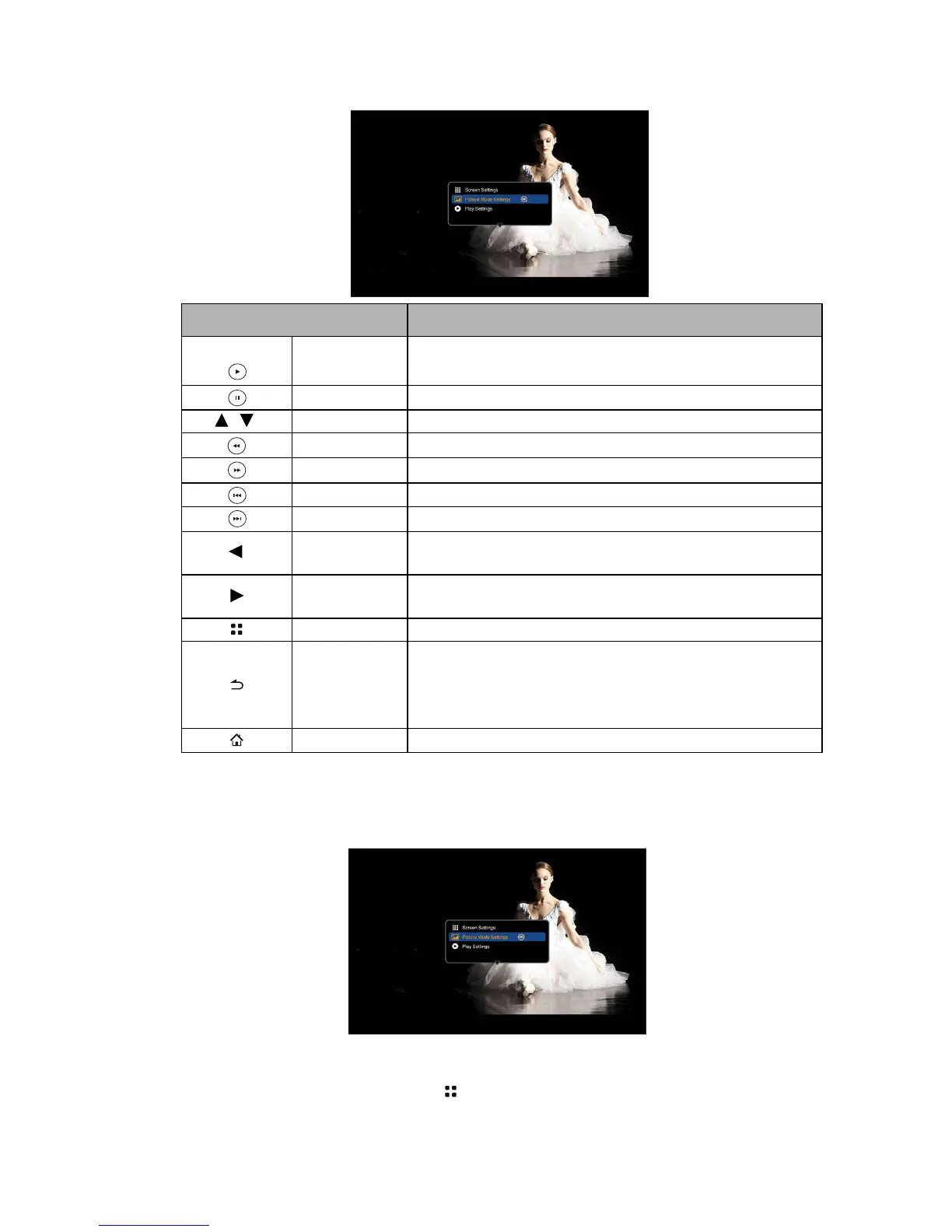 The video player pop-up menu provides an on-screen display (OSD) for adjustments when