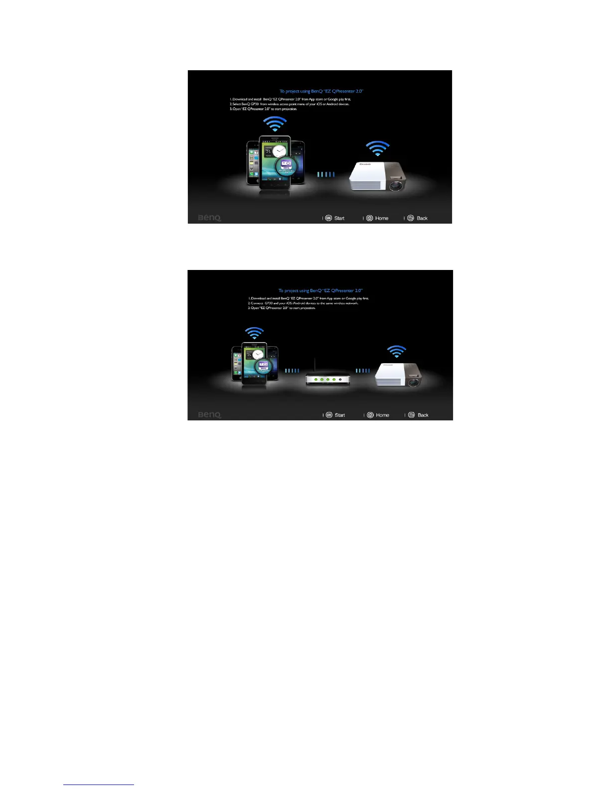 same Wi-Fi network. Open “BenQ EZ QPresenter 2.0” to start projection.