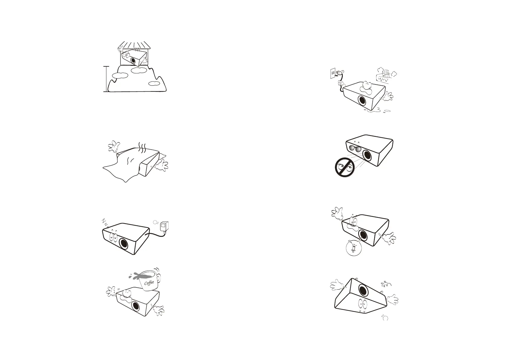 7. Do not step on the projector or place any objects upon it.