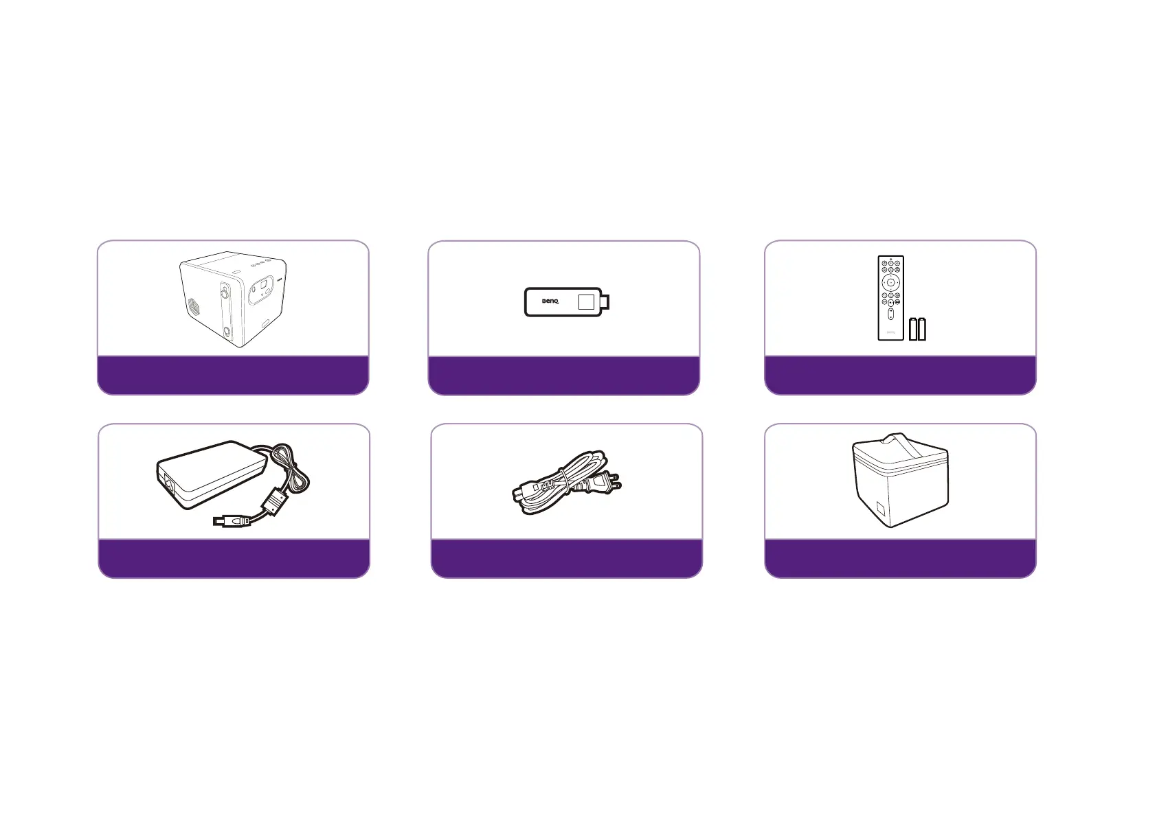 Carefully unpack and verify that you have the items below. Some of the items may not be available depending on your region of purchase. Please check