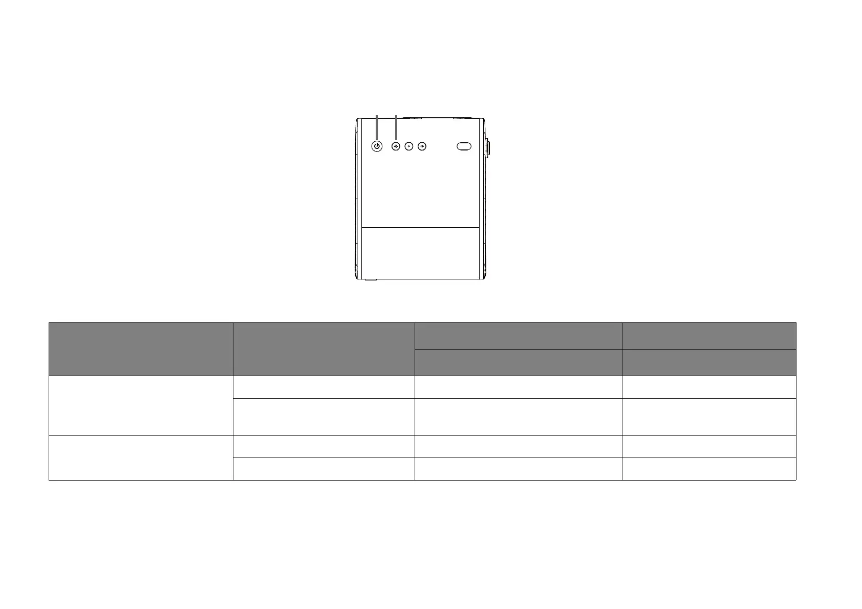 There is a multi-color power LED (1) and a blue/red Bluetooth LED (2) at the top of the projector.