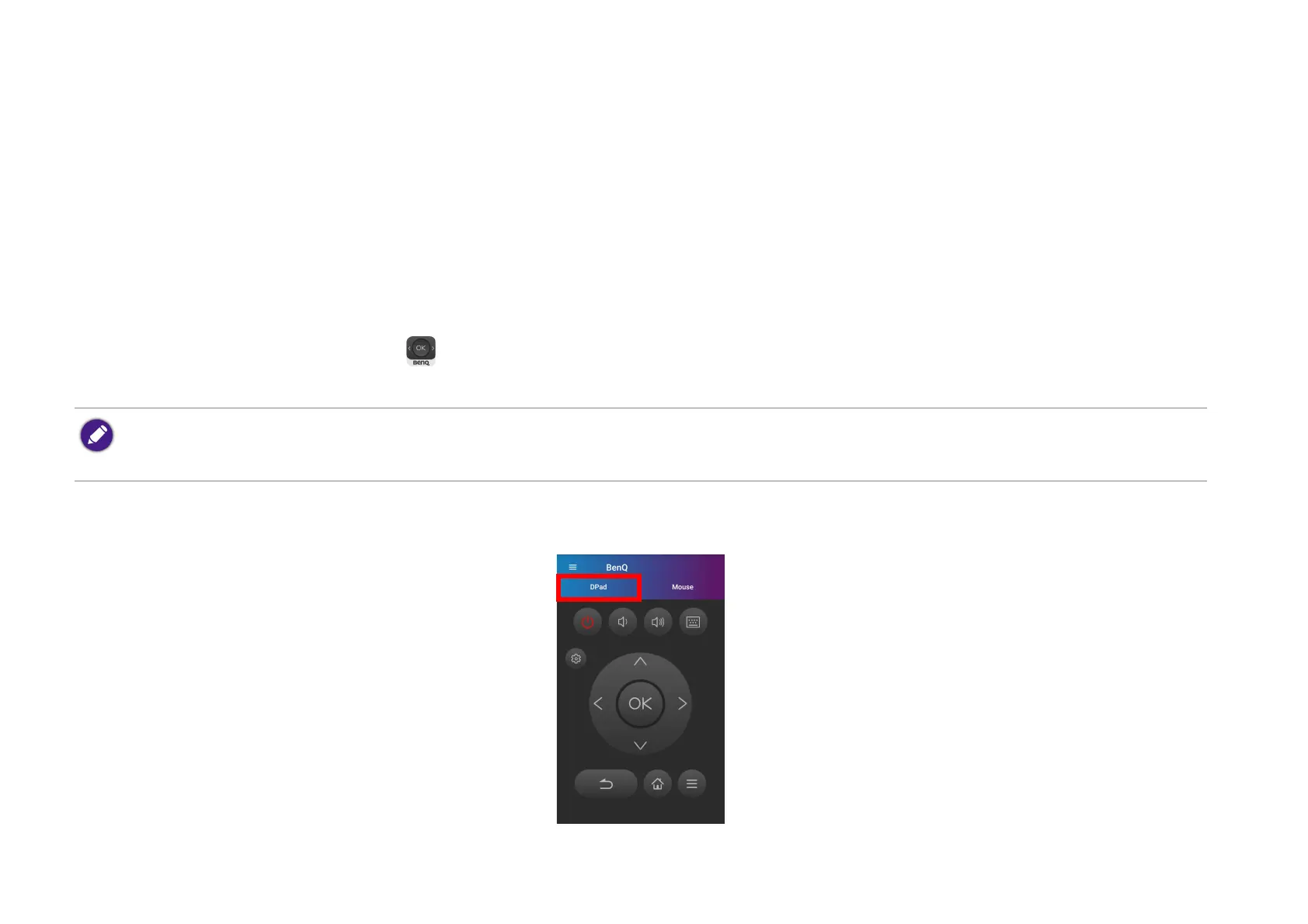 •Tap DPad to use the pre-configured buttons in the app to control your projector.
