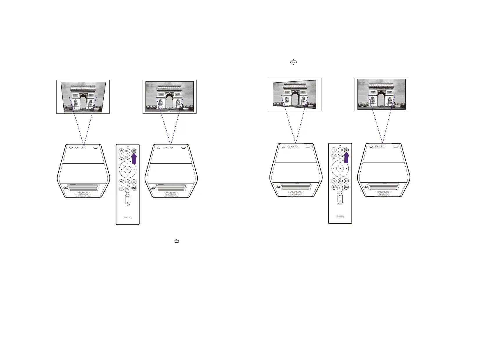 is not perpendicular to the screen. To correct the keystone effect press the keystone button on the remote control and then follow the on-screen