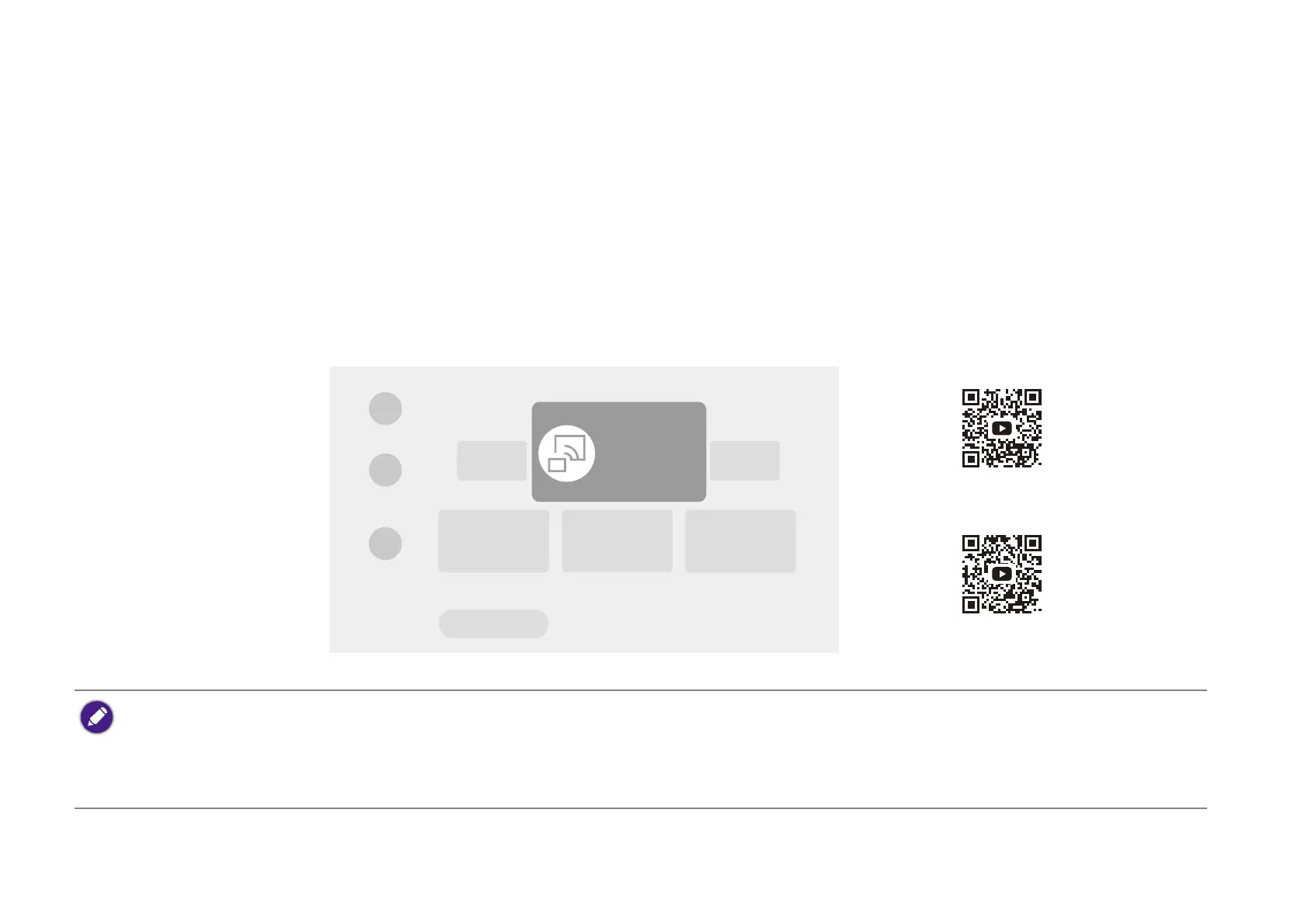 Refer to the QS01 user manual (available from Support.BenQ.com) or scan the following QR codes for instructions on how to perform wireless