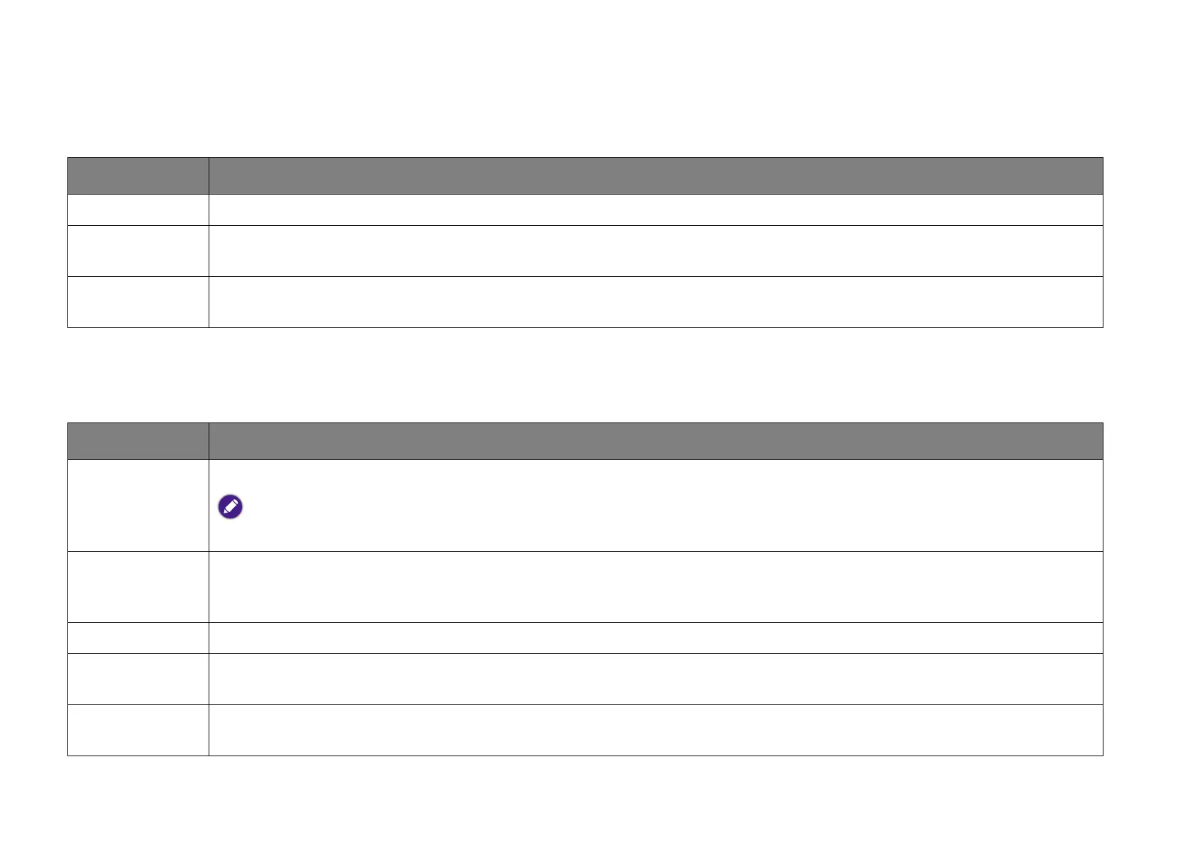 Displays information on the current status of the projector including the current Detected Resolution, Source, Picture