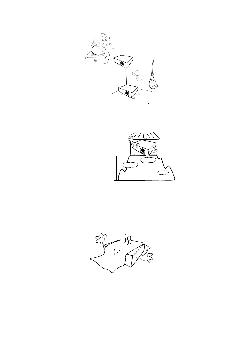 contaminate optical components, shorten the projector’s lifespan